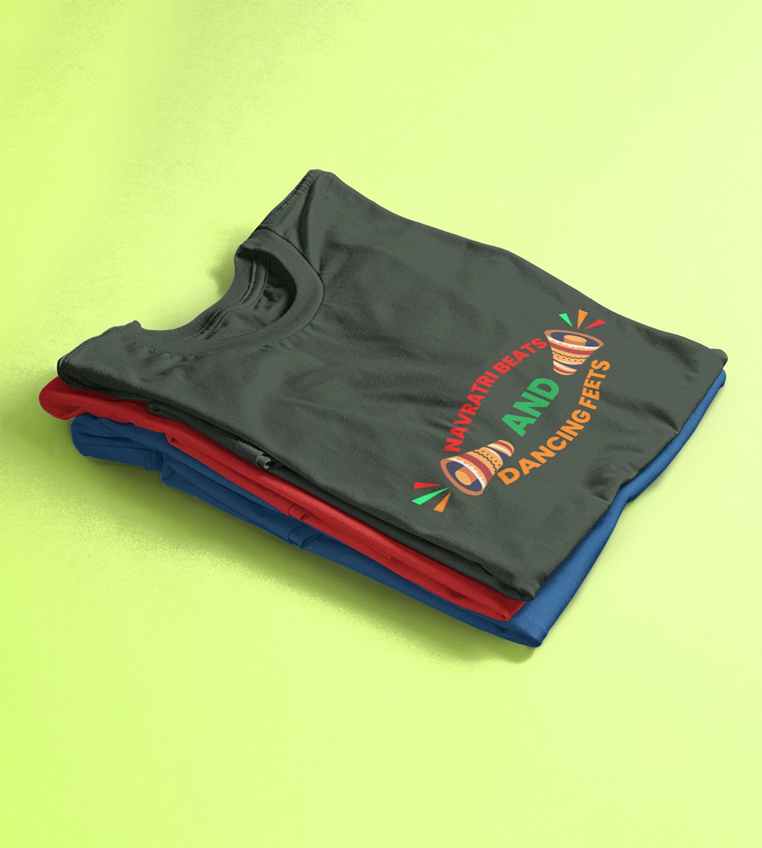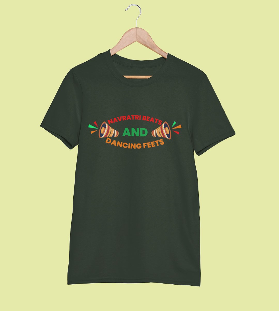 Navratri beats printed unisex adults round neck cotton half-sleeve green tshirt specially for Navratri festival/ Durga puja