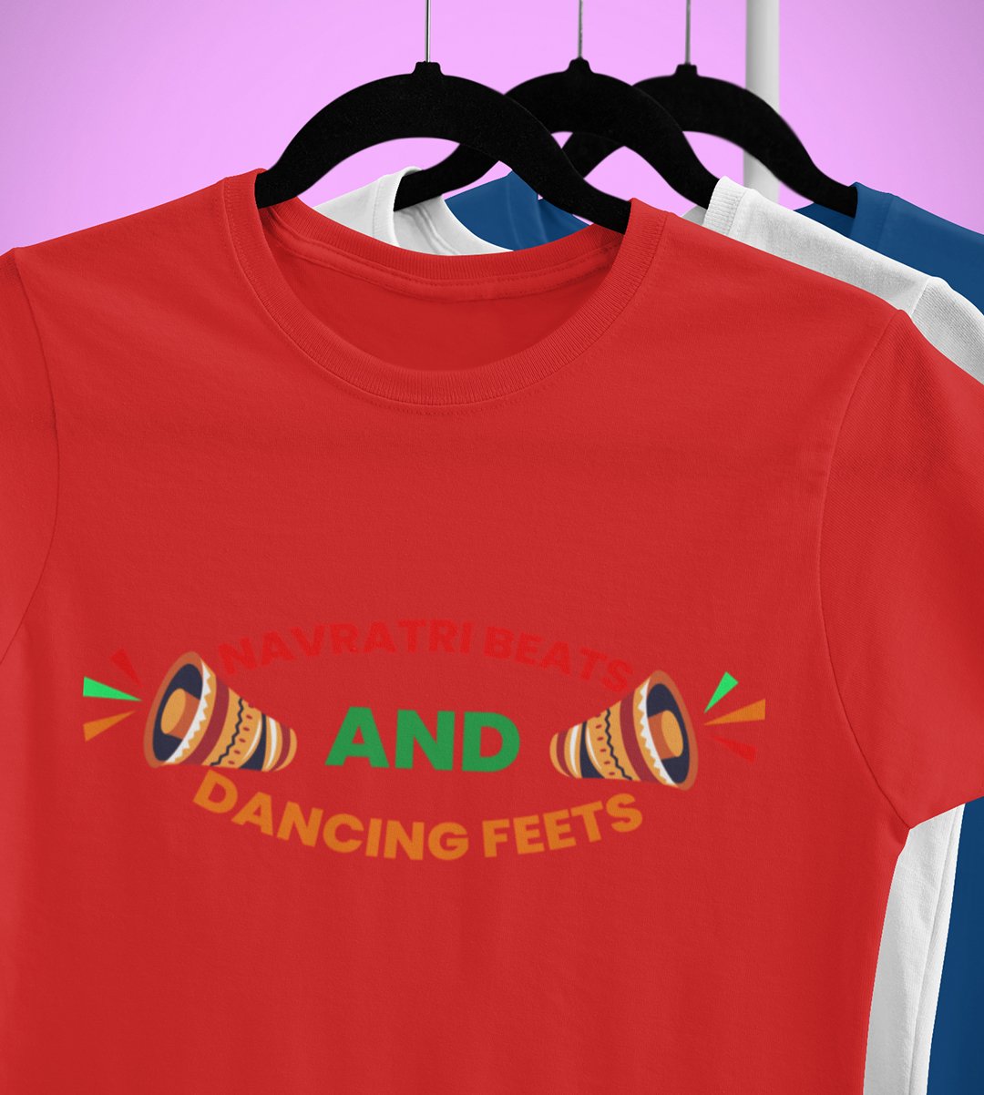 Navratri beats printed unisex adults round neck cotton half-sleeve red tshirt specially for Navratri festival/ Durga puja