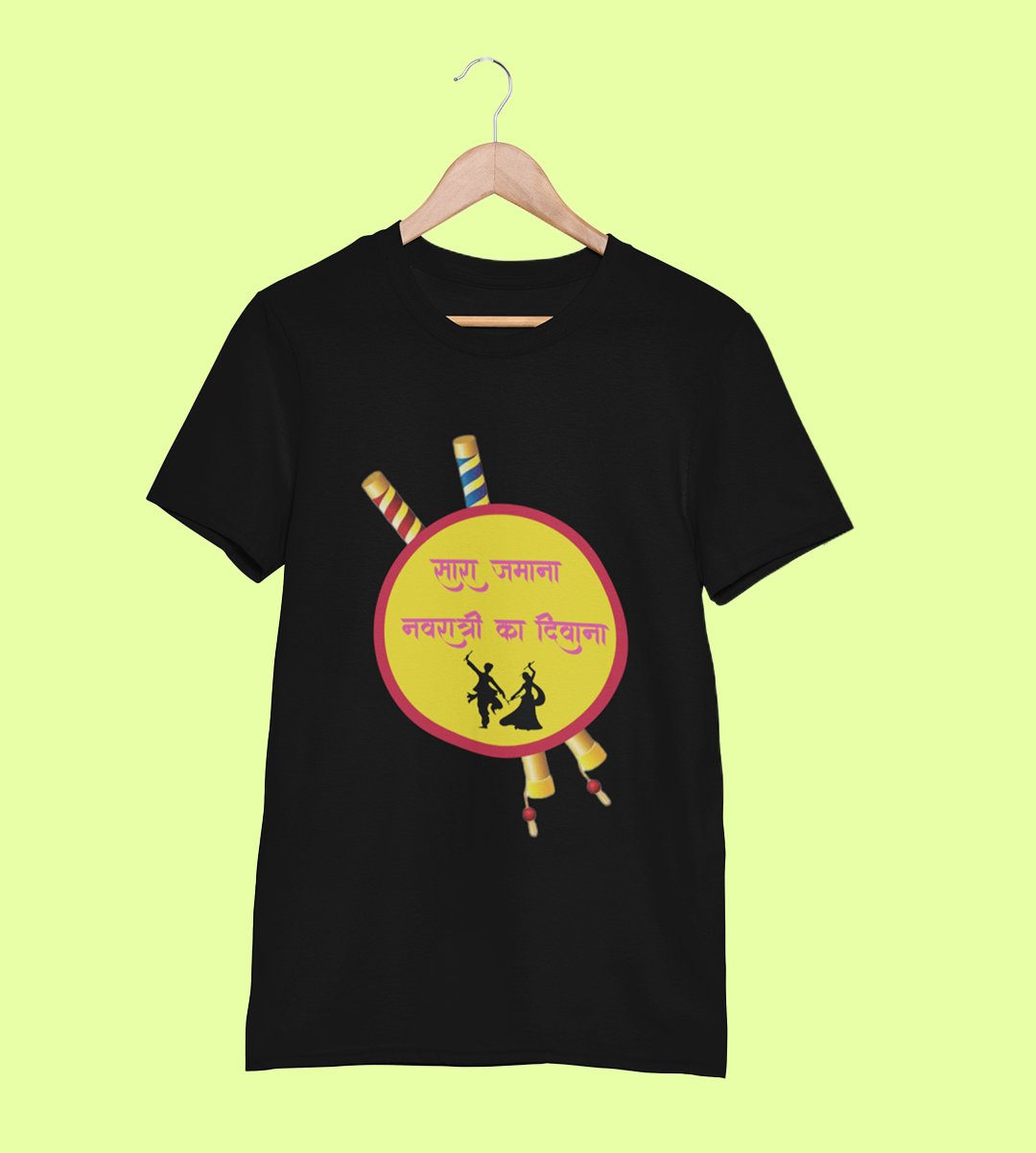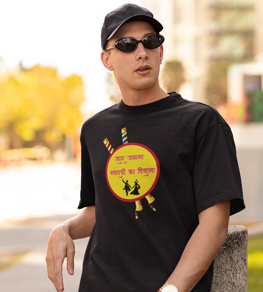 Navratri ka deewana printed unisex adults round neck cotton half-sleeve black tshirt specially for Navratri festival/ Durga puja