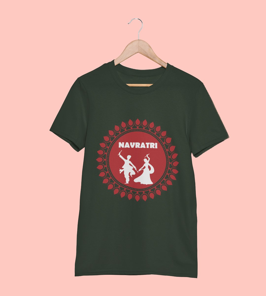 Navratri is a very auspicious festival for hindus. It takes place at the beginning of October and sometimes September. Enjoy the 9 days of festivities with full zeal and make yourself submerged in the love of Maa Durga. Navratri is also known as Durga Puja. And with this Tees, you can shine like a star during this festive season with our navratri themed cotton half sleeved Tshirts. You can pair our t-shirts with trousers and denim of your choice and make it a weekday smart casual or weekend wear. This is durable. This tshirt is smooth and soft which makes you comfortable to wear during all seasons. The printing in it is durable and odourless. It has five sizes, S,M,L,XL,XXL. The Tshirt colour is intact even after repeated washes. It can be kept in your wardrobe and hangers. Please avoid washing mashine to clean this Tee, it may affect the print. Hand wash only. We have brought you many navratri related designs printed on our different colour Tshirts to choose from. Grab it now.
