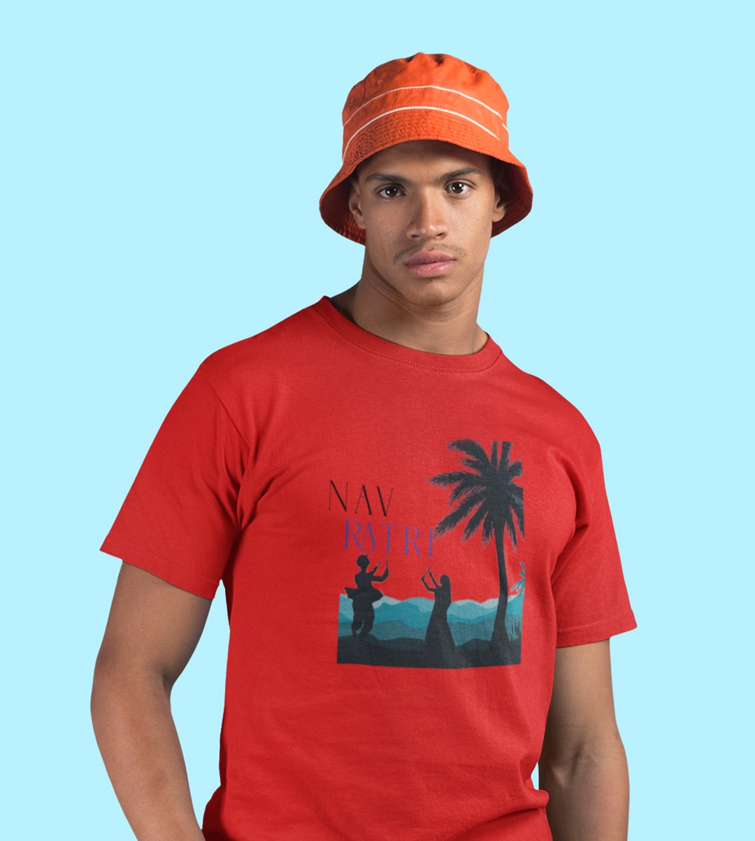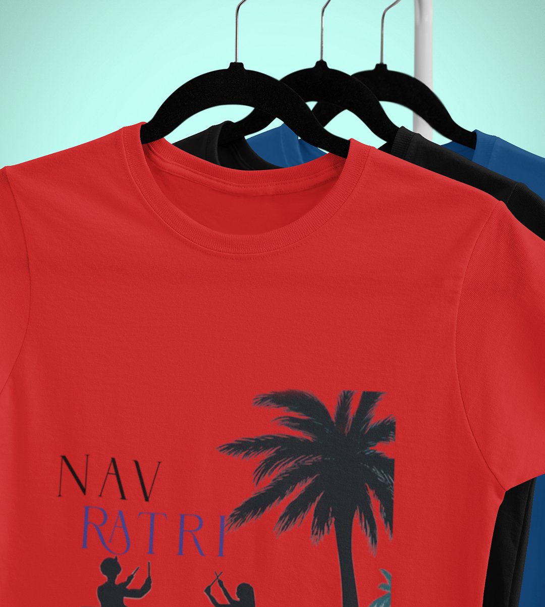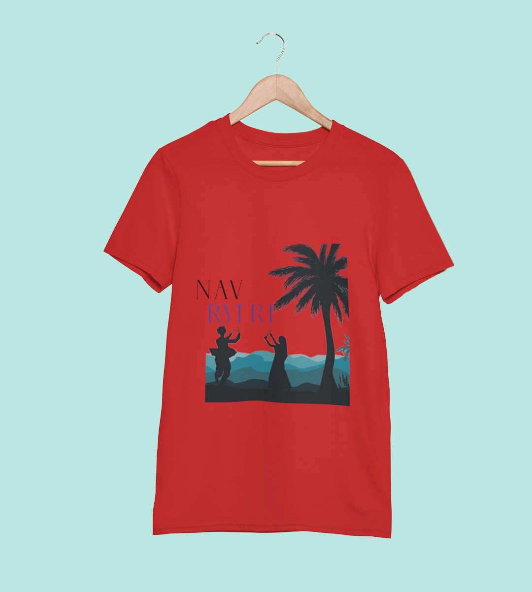 Navratri is a very auspicious festival for hindus. It takes place at the beginning of October and sometimes September. Enjoy the 9 days of festivities with full zeal and make yourself submerged in the love of Maa Durga. Navratri is also known as Durga Puja. And with this Tees, you can shine like a star during this festive season with our navratri themed cotton half sleeved Tshirts. You can pair our t-shirts with trousers and denim of your choice and make it a weekday smart casual or weekend wear. This is durable. This tshirt is smooth and soft which makes you comfortable to wear during all seasons. The printing in it is durable and odourless. It has five sizes, S,M,L,XL,XXL. The Tshirt colour is intact even after repeated washes. It can be kept in your wardrobe and hangers. Please avoid washing mashine to clean this Tee, it may affect the print. Hand wash only. We have brought you many navratri related designs printed on our different colour Tshirts to choose from. Grab it now.