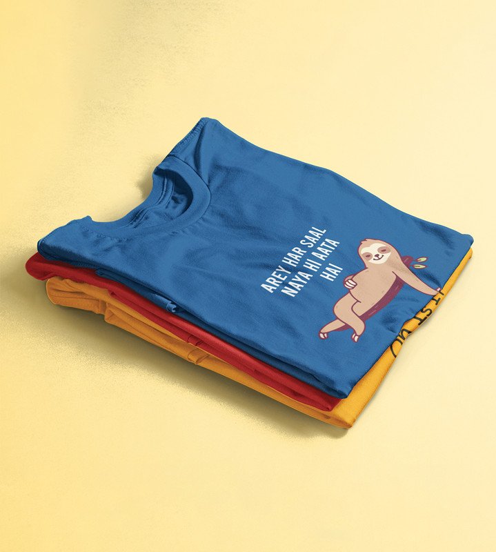 New Year Always Comes Blue New Year Printed T-shirt For Mens