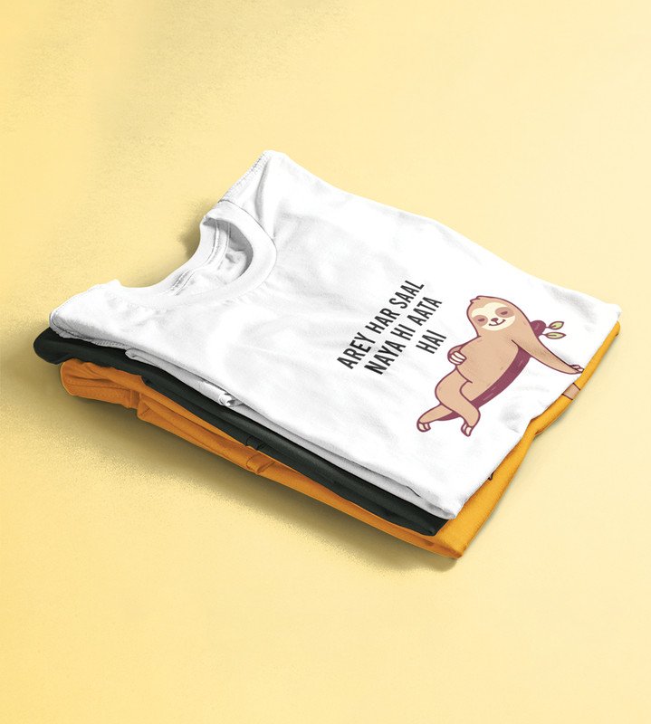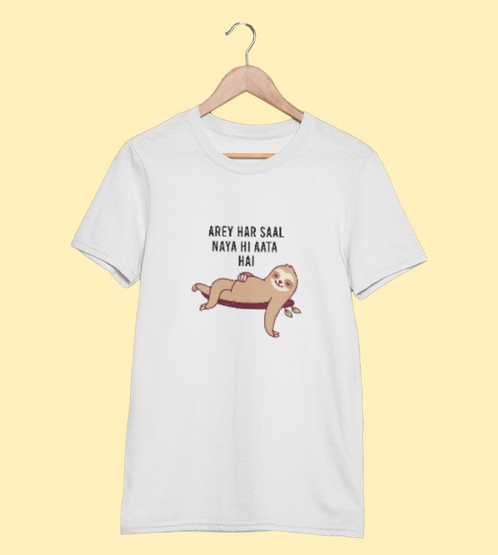 New Year Always Comes White New Year Printed T-shirt For Mens