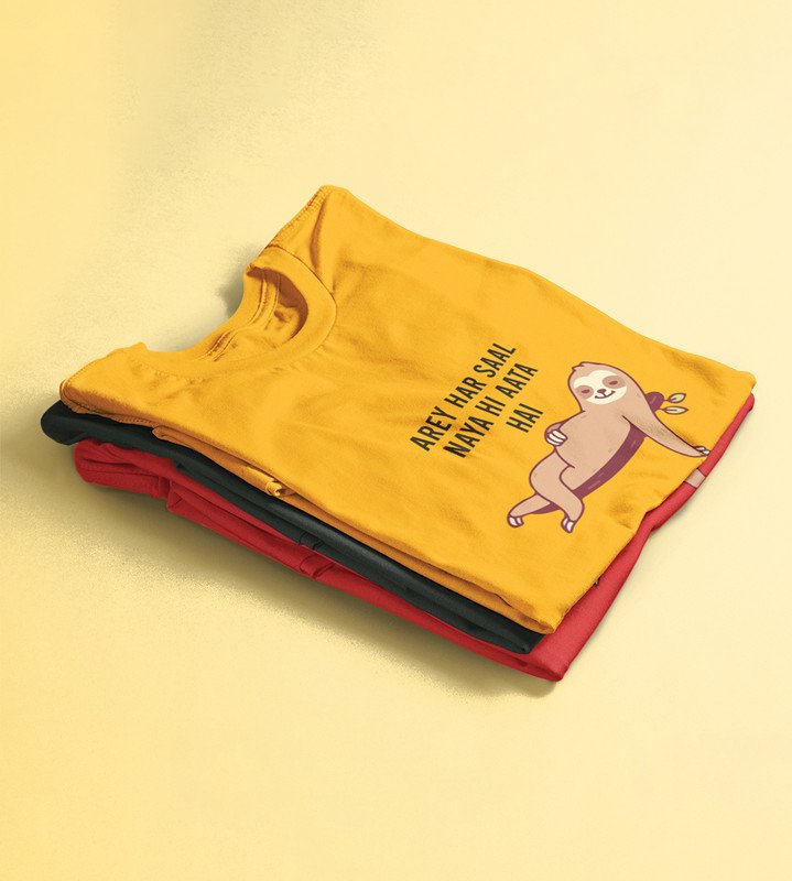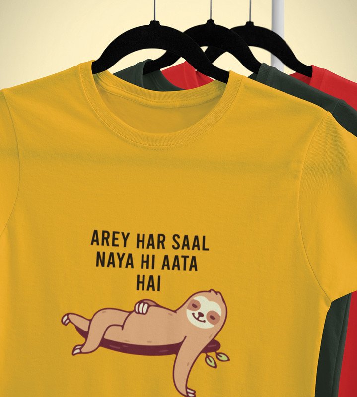 New Year Always Comes Yellow New Year Printed T-shirt For Mens