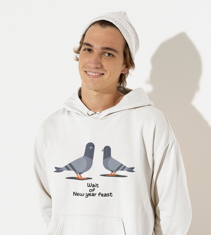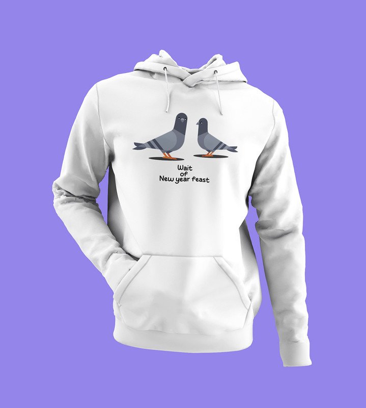 New Year Feast, White Graphic Printed Hoodies For Mens Boys
