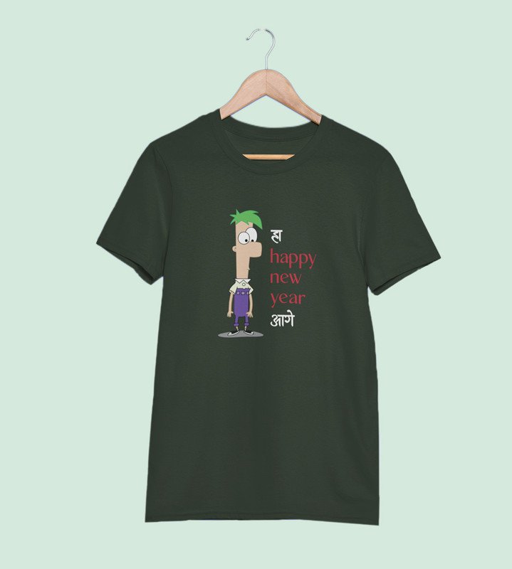 New Year Has Come Green New Year Printed T-shirt For Mens