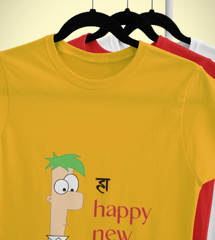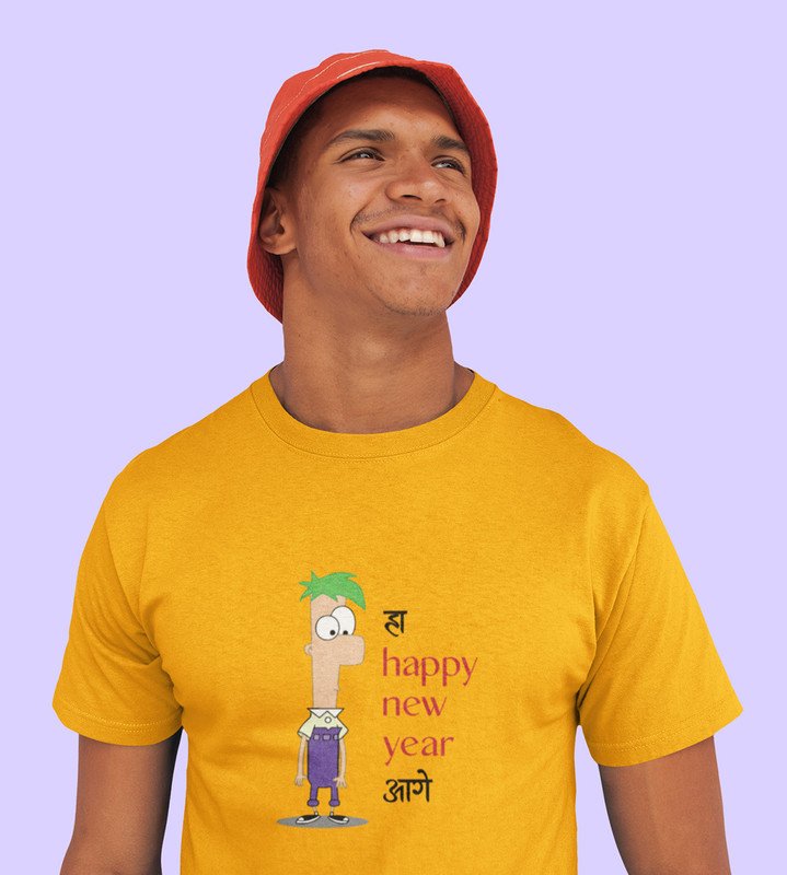 New Year Has Come Yellow New Year Printed T-shirt For Mens