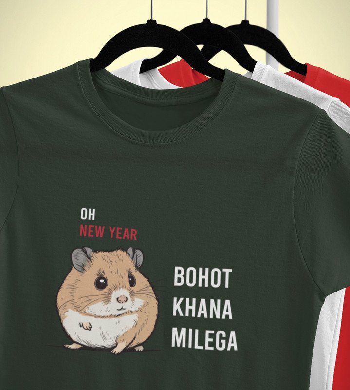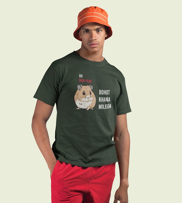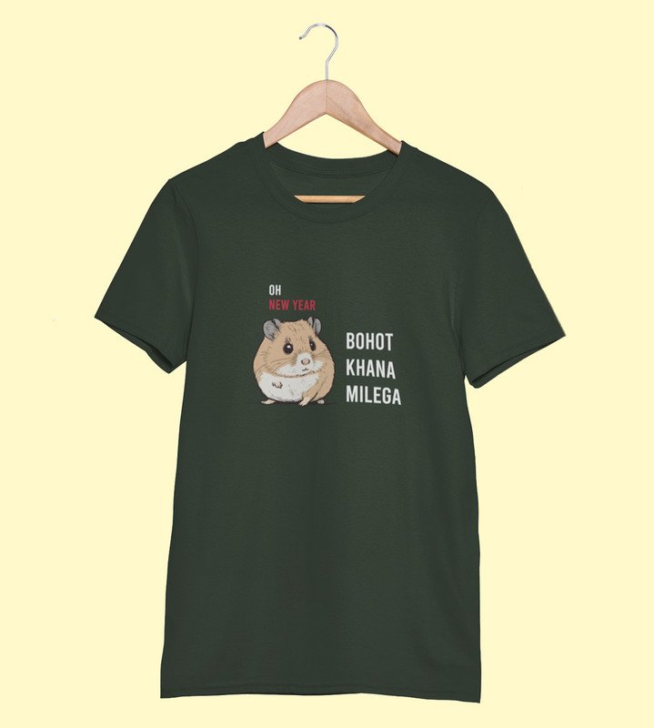 New Year More Food Green Printed T-shirt For Mens On New Year Theme Best Gift For New Year