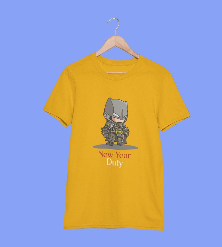 New Year New Duty Yellow Printed T-shirt For Mens On New Year Theme Best Gift For New Year
