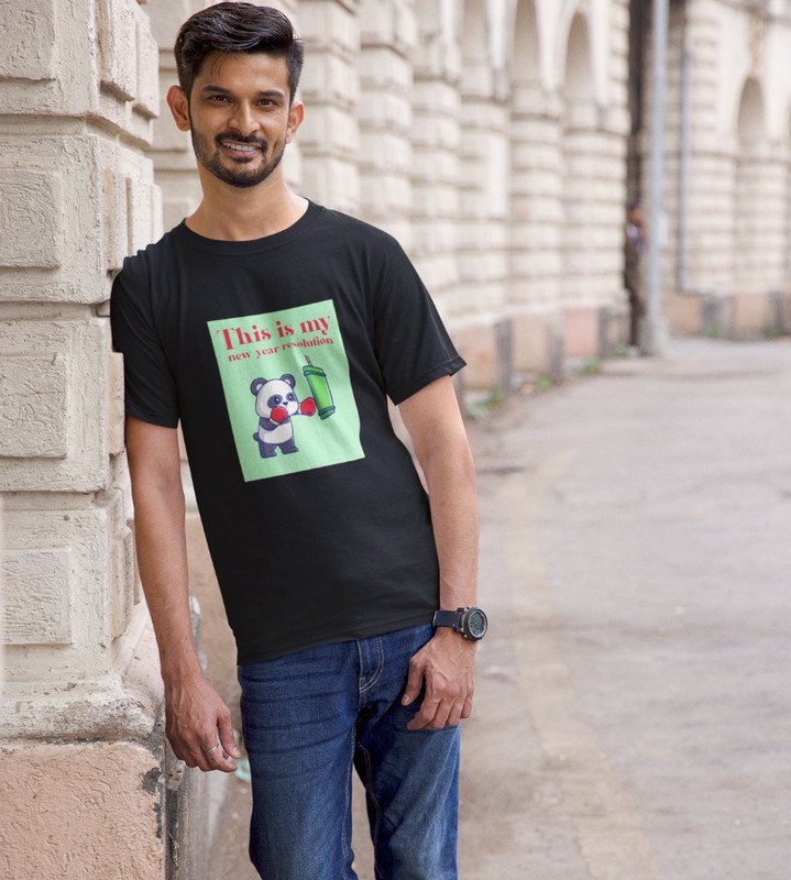 New Year New Resolution Black Men Printed T-shirt For Mens Boys