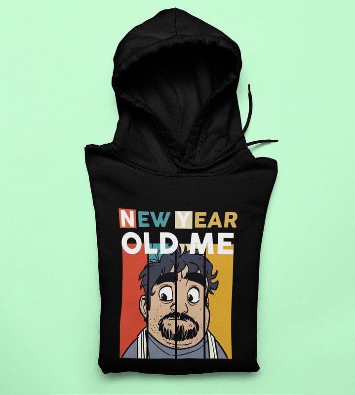 New Year Old Me, Black New Year Printed Hoodies For Mens