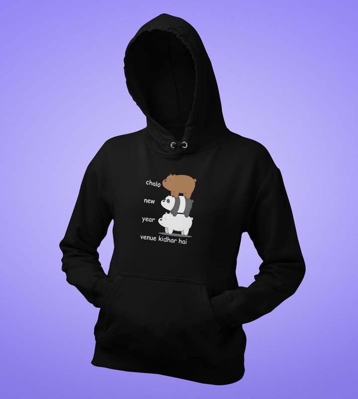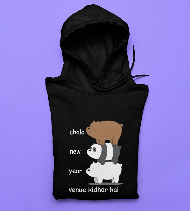 New Year Party, Black Graphic Printed Hoodies For Mens Boys