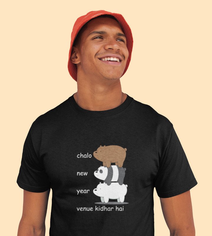 New Year Party Black Graphic Printed T-shirt For Mens Boys