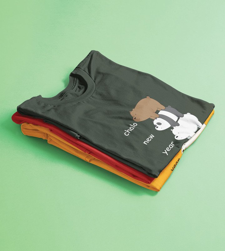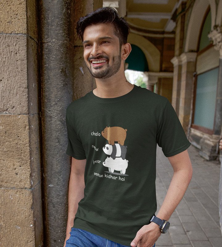 New Year Party Green Graphic Printed T-shirt For Mens Boys