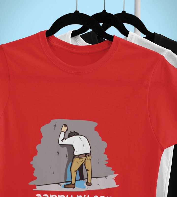 New Year Party Red Graphic Printed T-shirt For Mens Boys