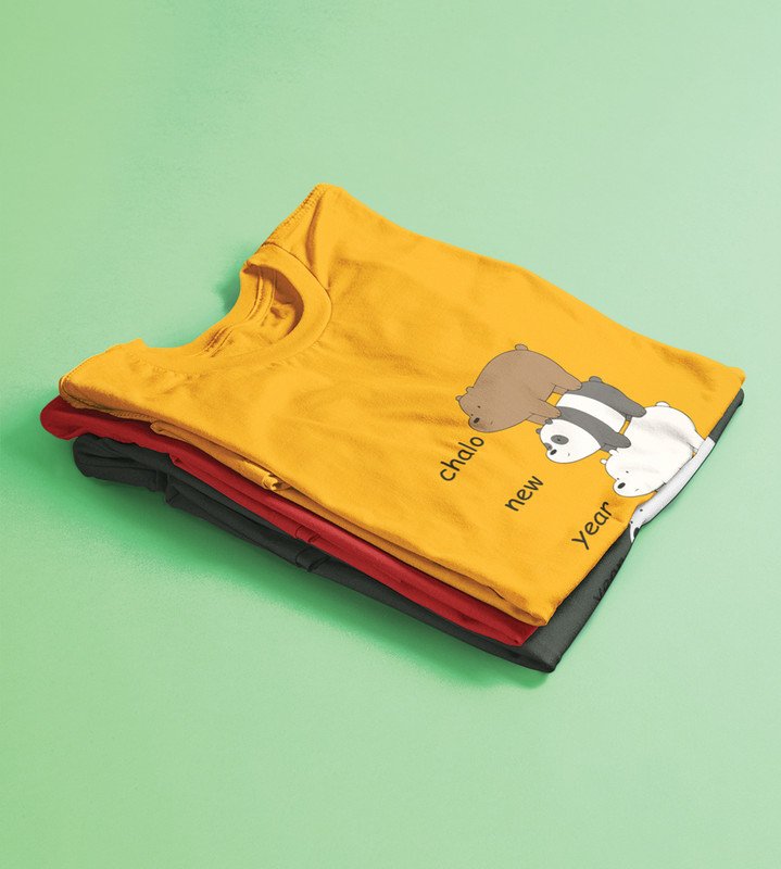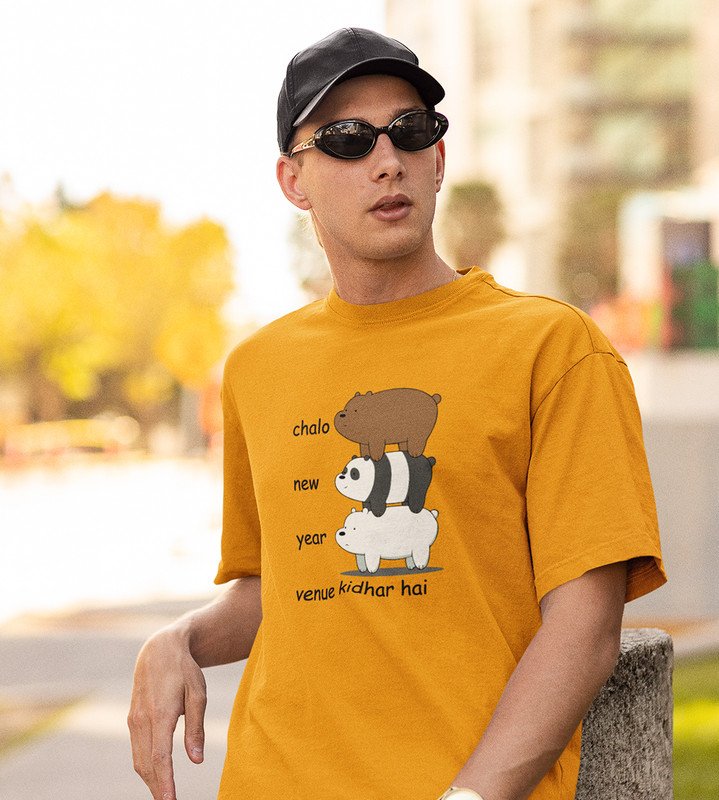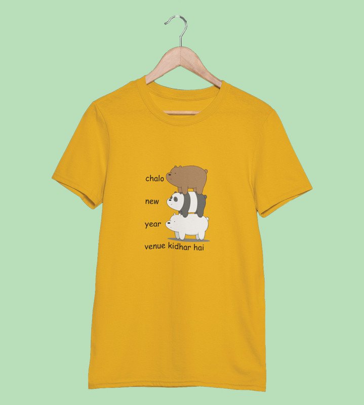 New Year Party Yellow Graphic Printed T-shirt For Mens Boys