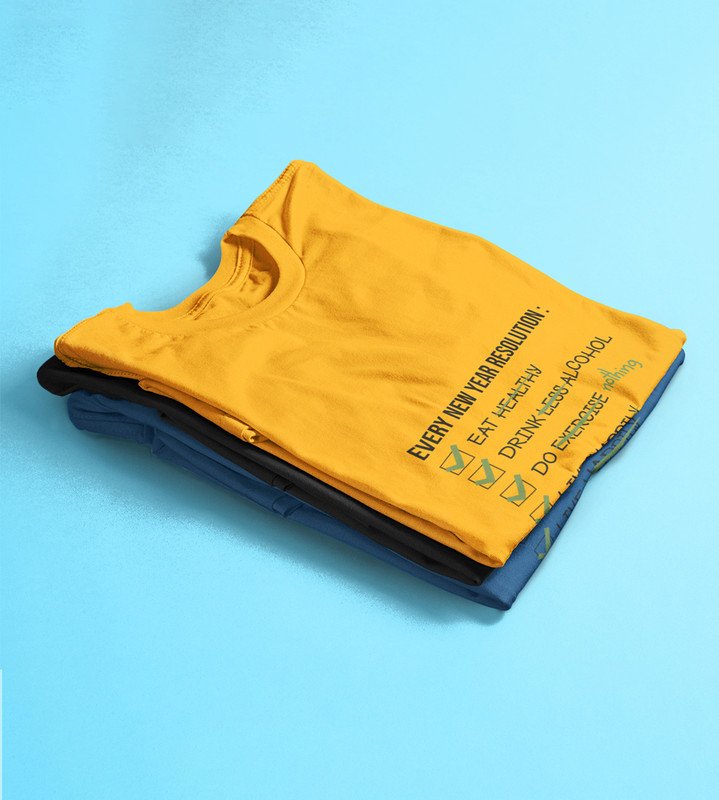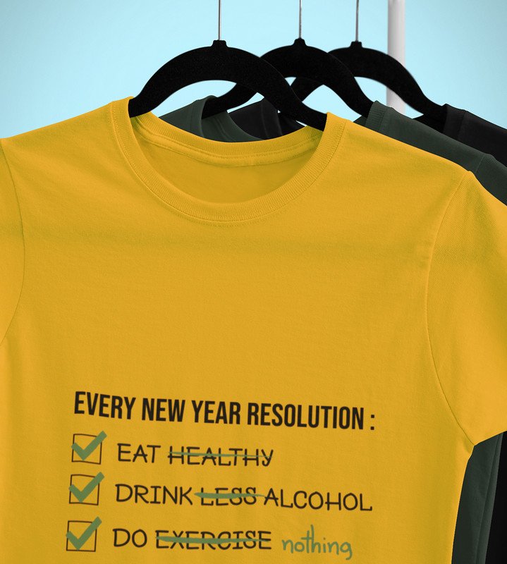 New Year Resolution Yellow Men Printed T-shirt For Mens Boys