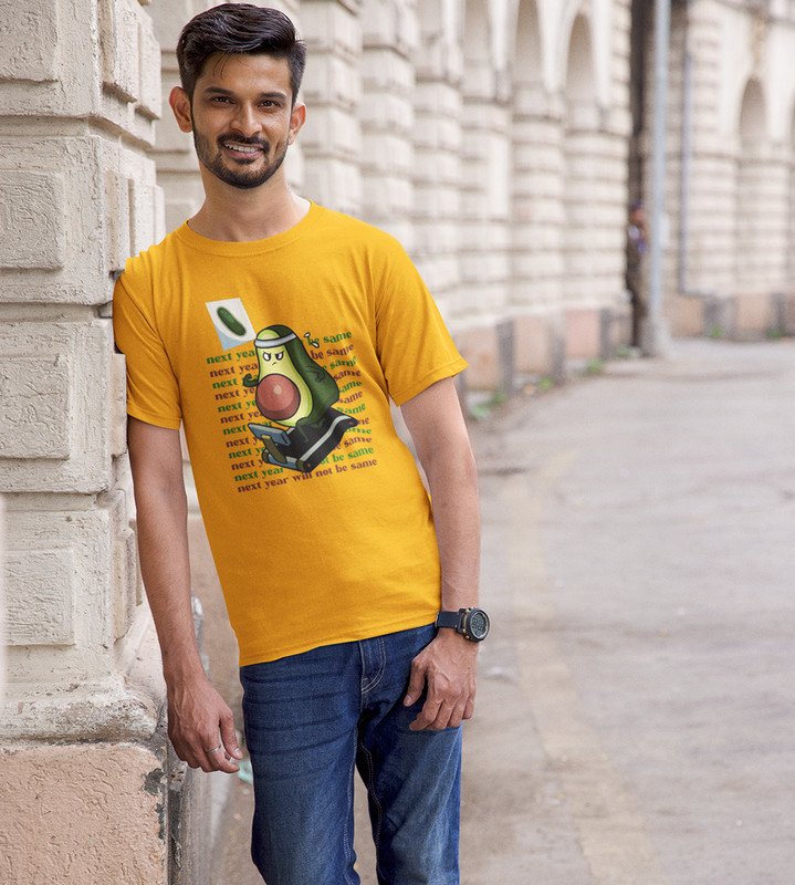 Next Year New Me Yellow Men Printed T-shirt For Mens Boys