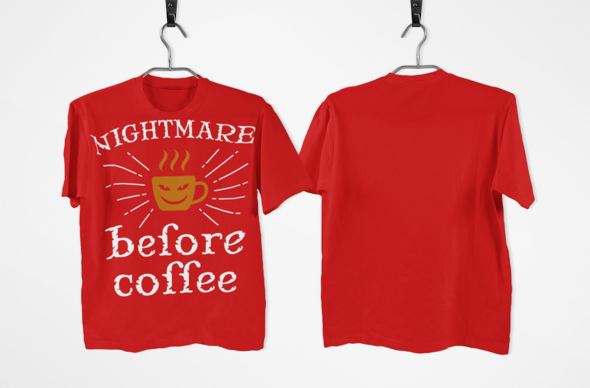 Nightmare before Coffee - Red - printed t shirt - comfortable round neck cotton.