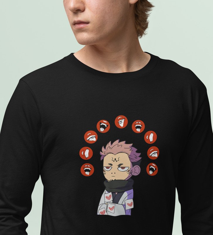 Nine Faced Itadori Cotton Black Printed Full Sleeves Tshirt For Mens and Boys