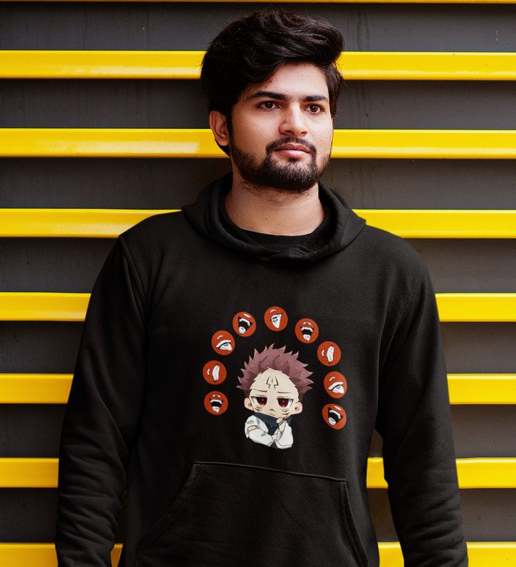 Nine Faced Itadori Cotton Black Printed Hoodies For Mens and Boys