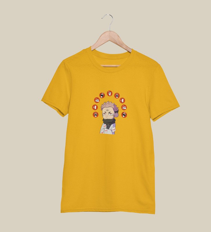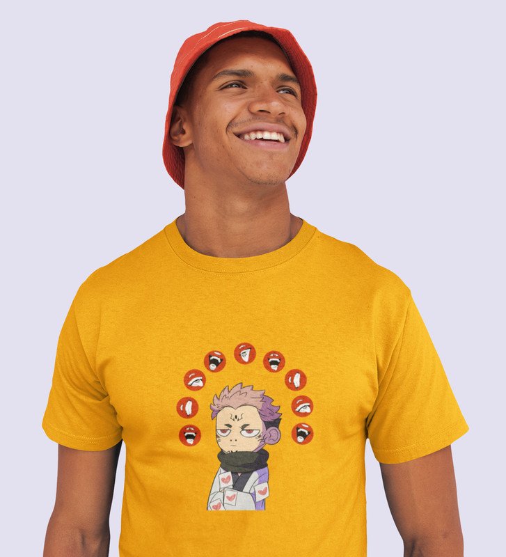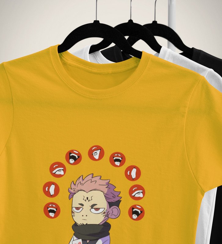 Nine Faced Itadori Cotton Yellow Printed Tshirt For Mens and Boys