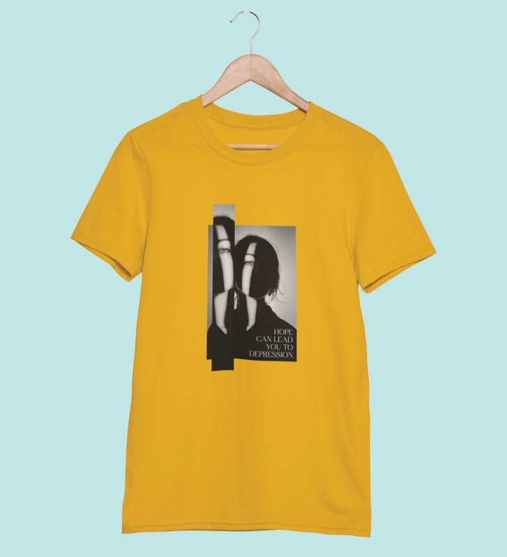 No Love No Hope, Statement Piece: Yellow Stylish Front Graphic Oversized Tee for Men
