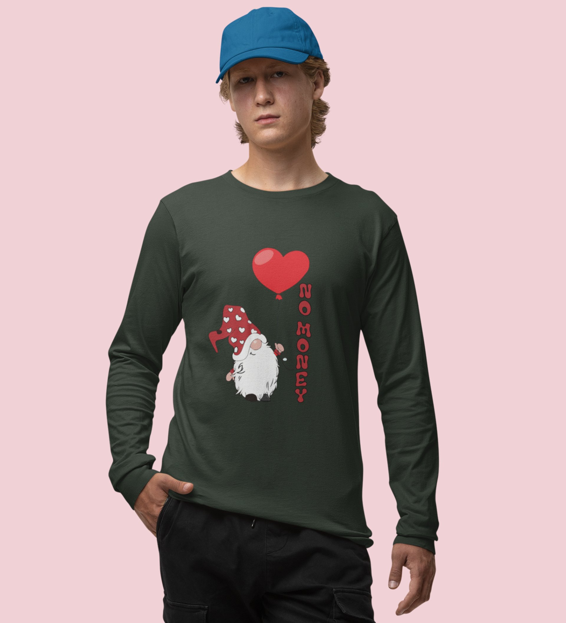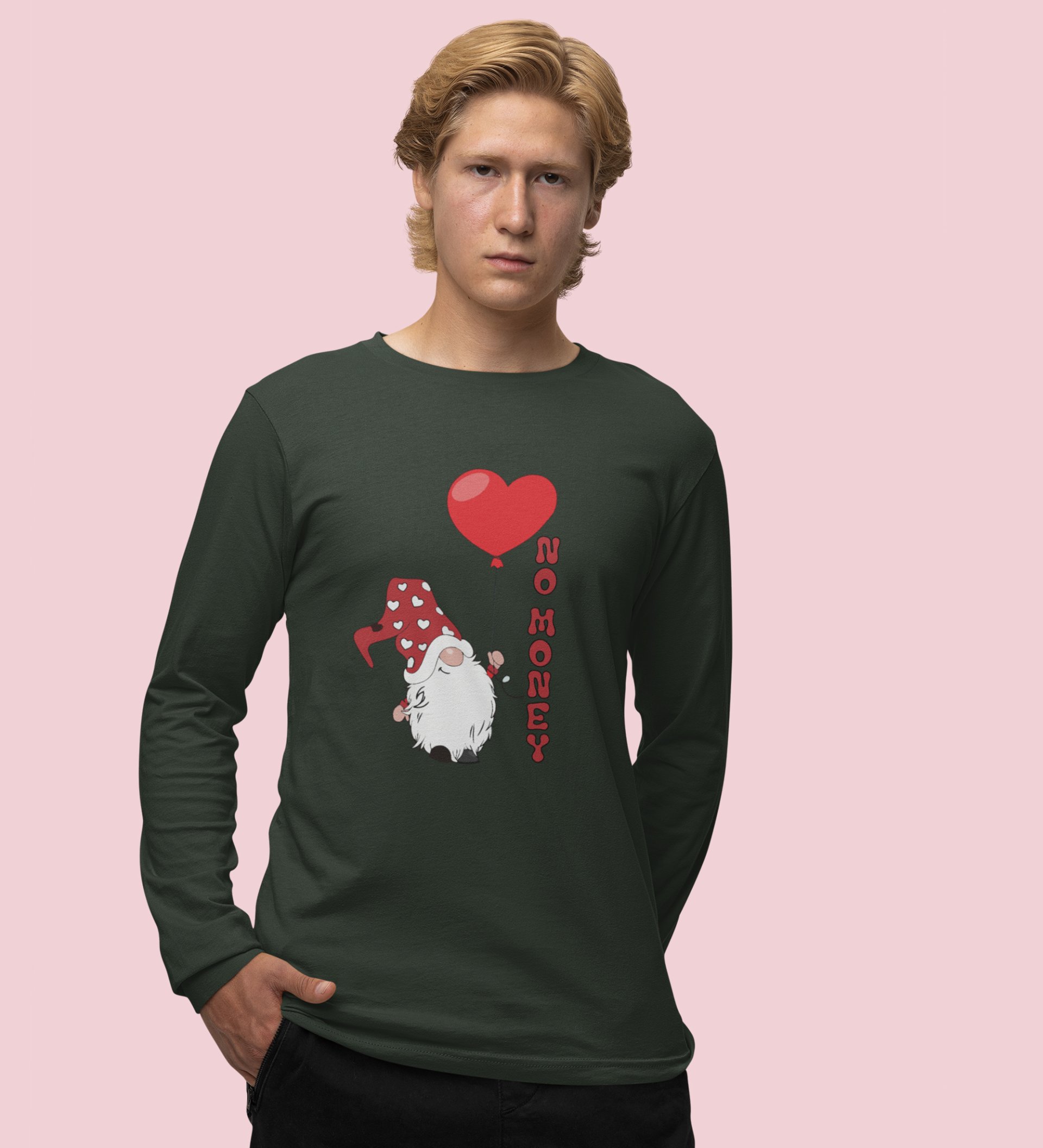 No Money: Cute Santa No Money ChristmasFull Sleeve T-shirt Green - BPA-Free, Leak-Proof Design - Ideal for Festive Outdoor Adventures Gift
