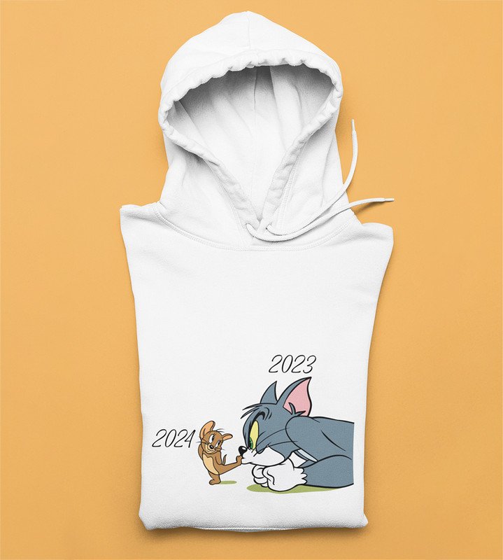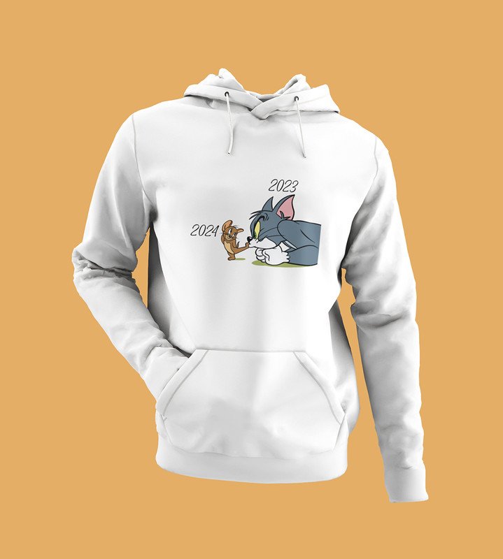 No More 2023, White New Year Printed Hoodies For Mens