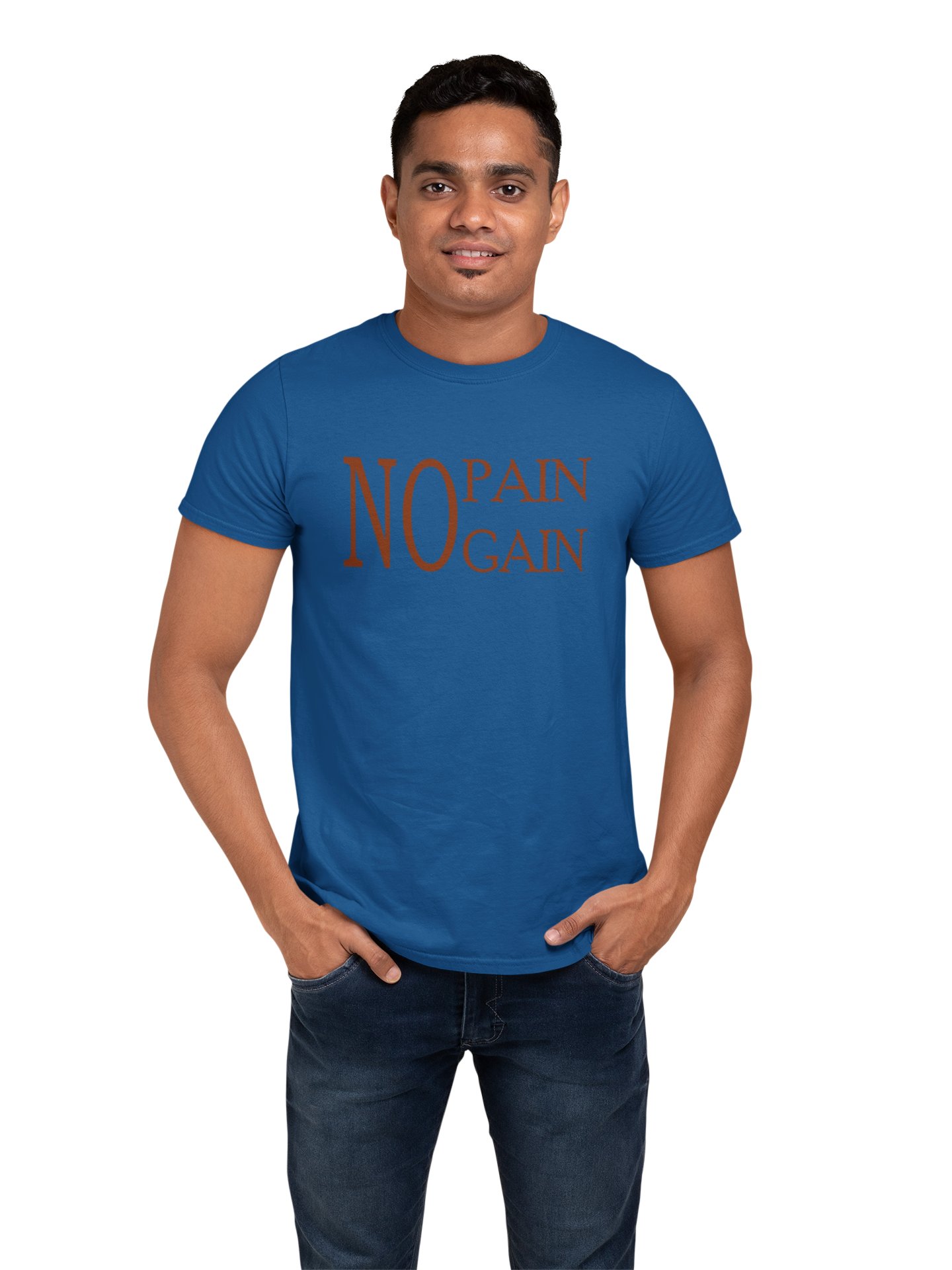 No Pain, Gain, Round Neck Gym Tshirt (Blue Tshirt) - Clothes for Gym Lovers - Suitable for Gym Going Person - Foremost Gifting Material for Your Friends and Close Ones