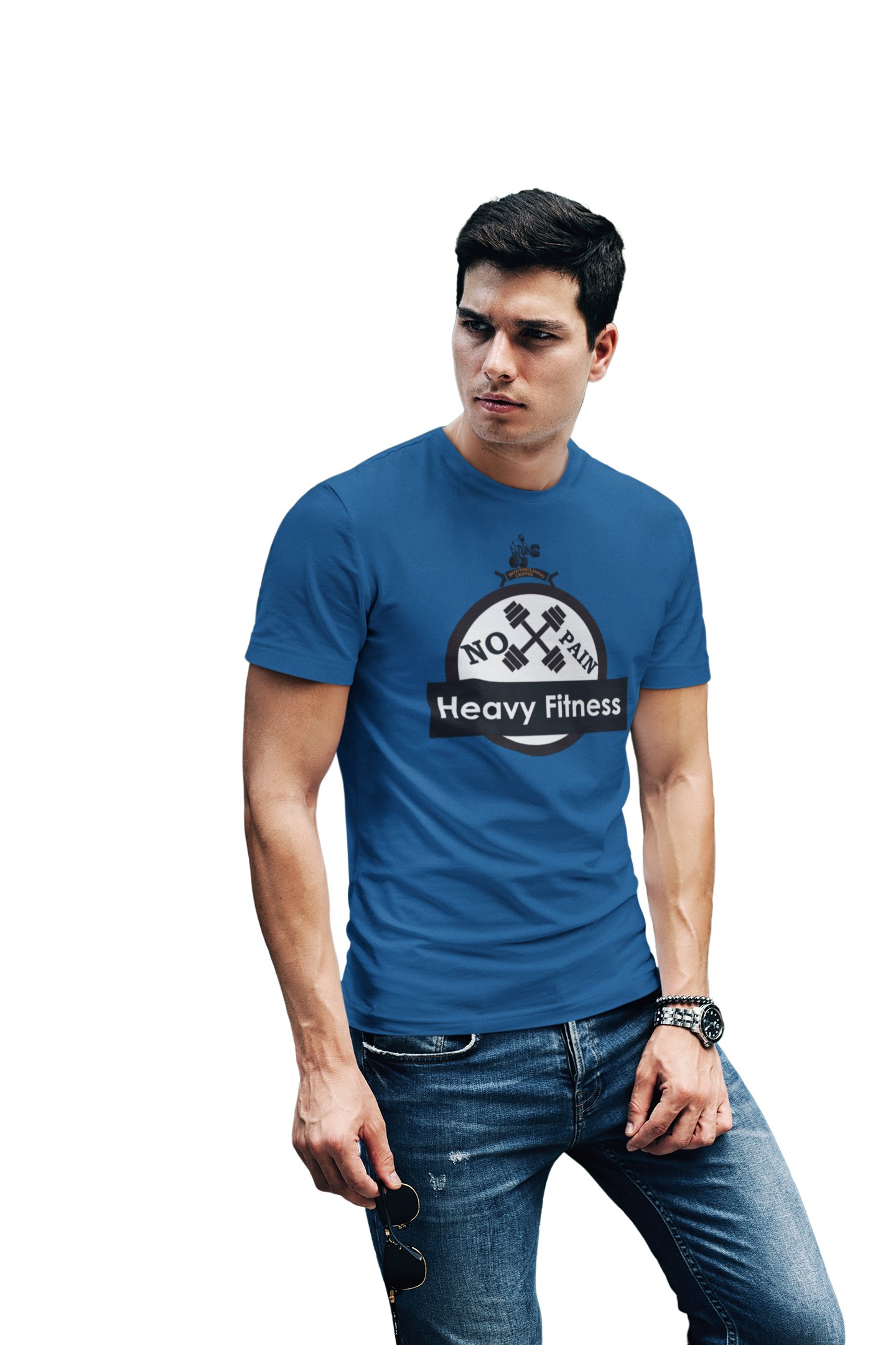 No Pain, Heavy Fitness, Round Neck Gym Tshirt (Blue Tshirt) - Clothes for Gym Lovers - Suitable for Gym Going Person - Foremost Gifting Material for Your Friends and Close Ones