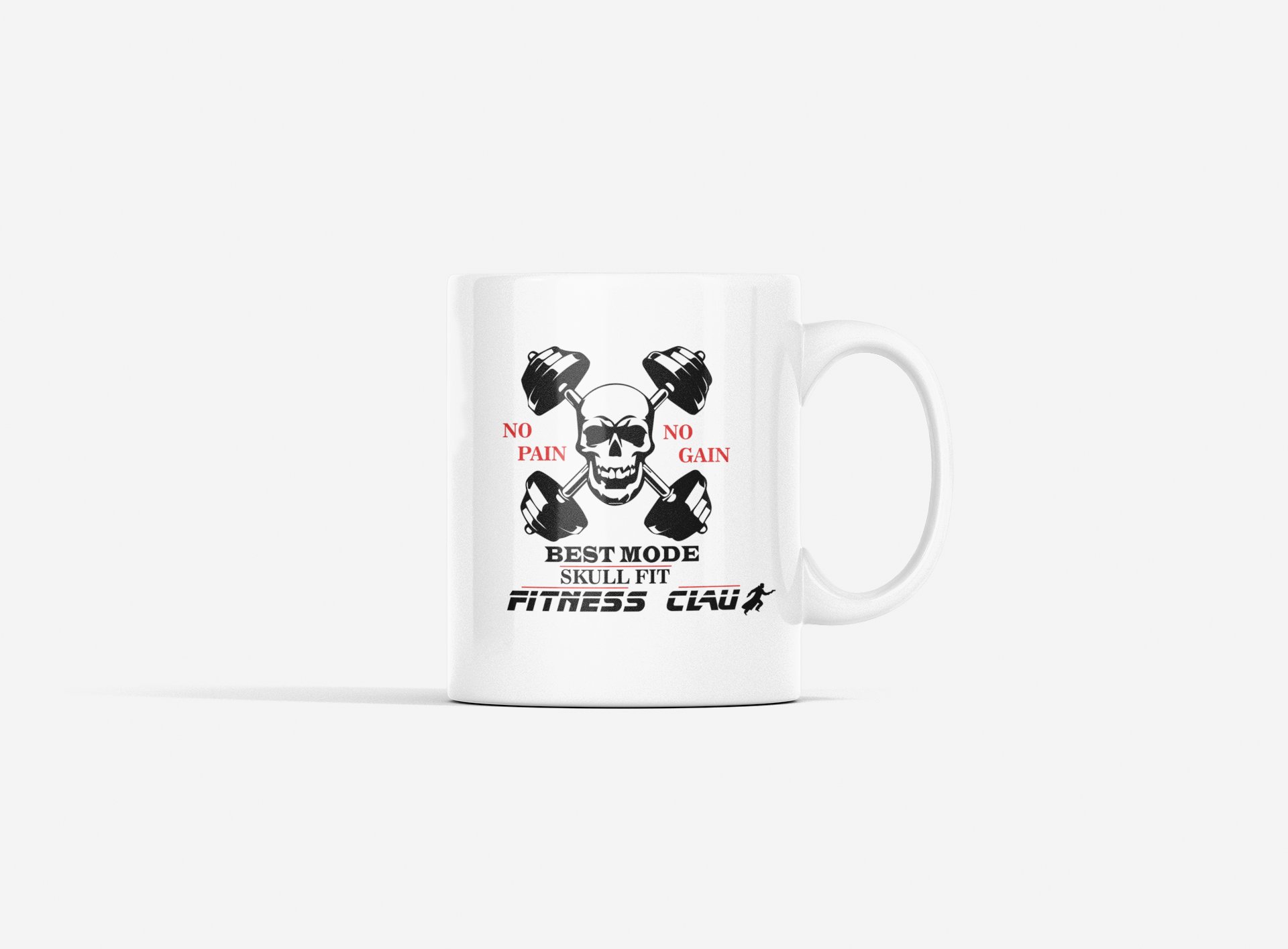 No Pain, No Gain, Best Mode, Skull Fit, Fitness Claus - gym themed printed ceramic white coffee and tea mugs/ cups for gym lovers