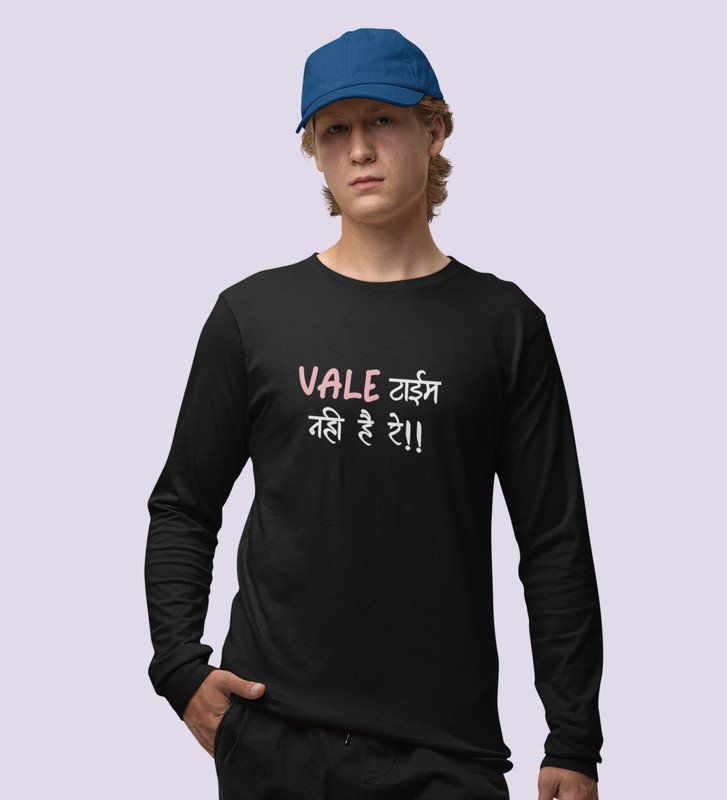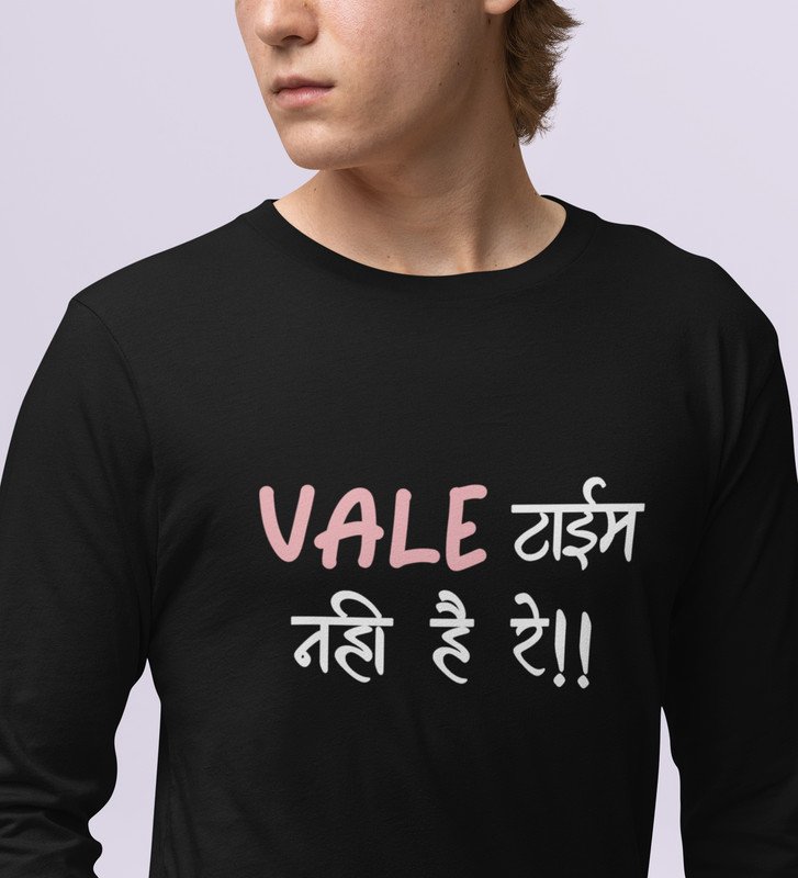 No Time For Valentine: (black) Full Sleeve T-Shirt For Singles.