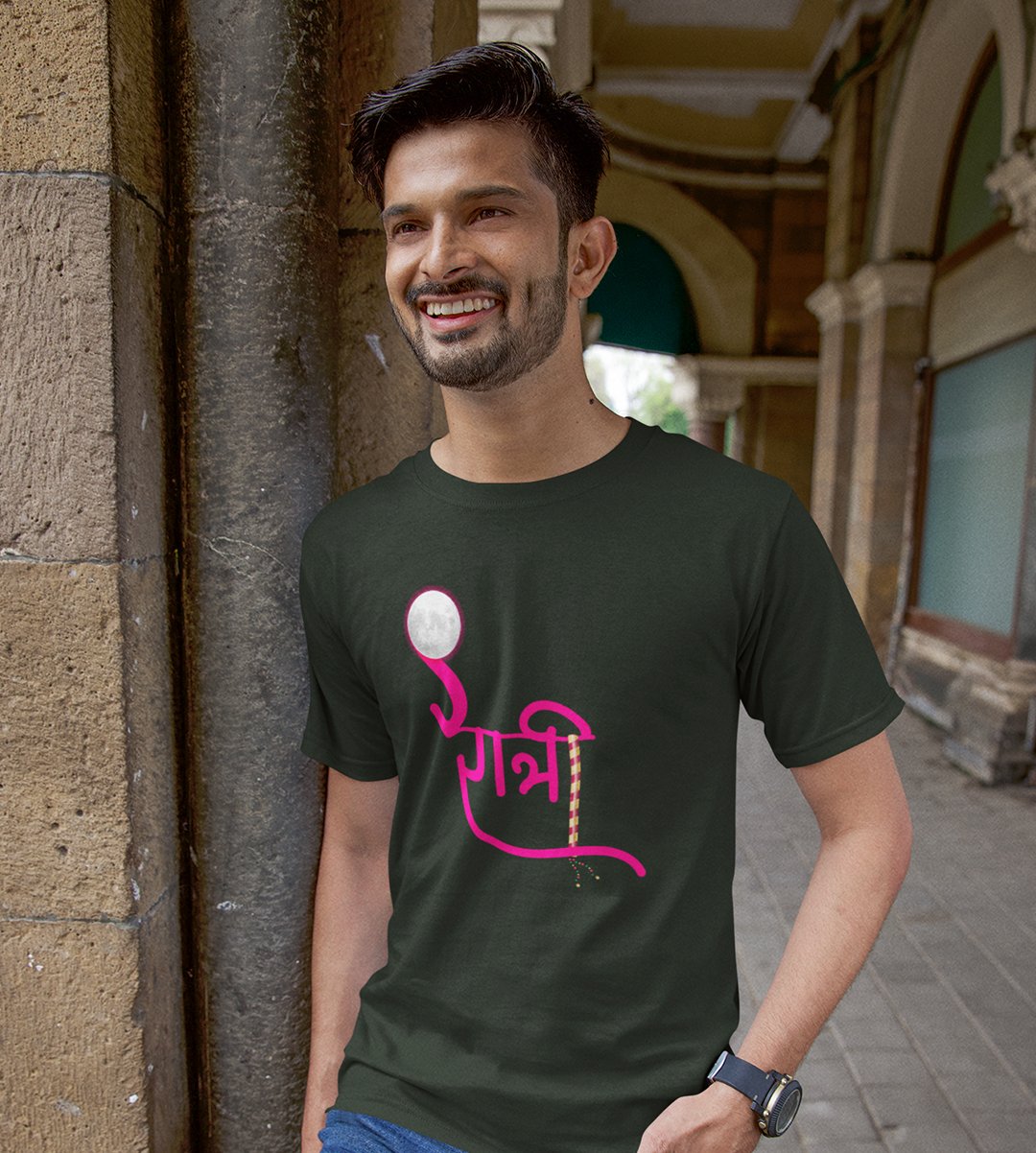 Navratri is a very auspicious festival for hindus. It takes place at the beginning of October and sometimes September. Enjoy the 9 days of festivities with full zeal and make yourself submerged in the love of Maa Durga. Navratri is also known as Durga Puja. And with this Tees, you can shine like a star during this festive season with our navratri themed cotton half sleeved Tshirts. You can pair our t-shirts with trousers and denim of your choice and make it a weekday smart casual or weekend wear. This is durable. This tshirt is smooth and soft which makes you comfortable to wear during all seasons. The printing in it is durable and odourless. It has five sizes, S,M,L,XL,XXL. The Tshirt colour is intact even after repeated washes. It can be kept in your wardrobe and hangers. Please avoid washing mashine to clean this Tee, it may affect the print. Hand wash only. We have brought you many navratri related designs printed on our different colour Tshirts to choose from. Grab it now.