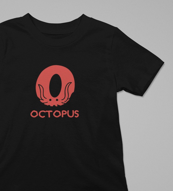 Ocean Octopus, Boys Printed Crew Neck Tshirt (Black)