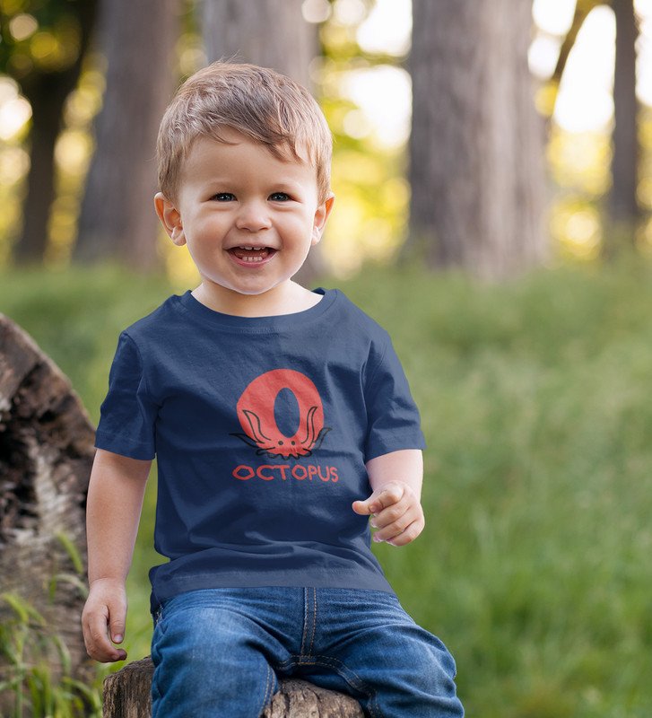 Ocean Octopus, Boys Printed Crew Neck tshirt (Navy blue)