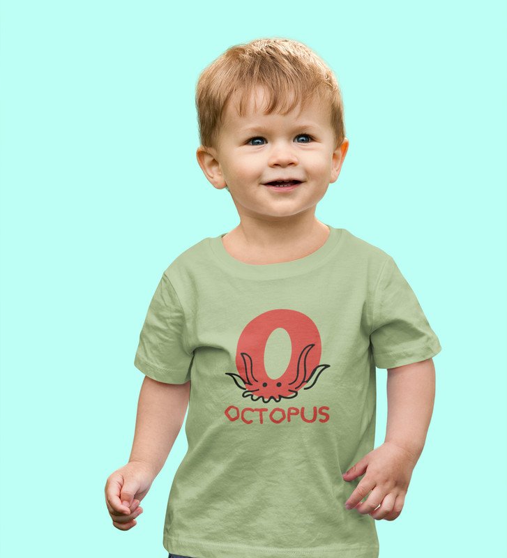 Ocean Octopus, Boys Printed Crew Neck tshirt (olive)