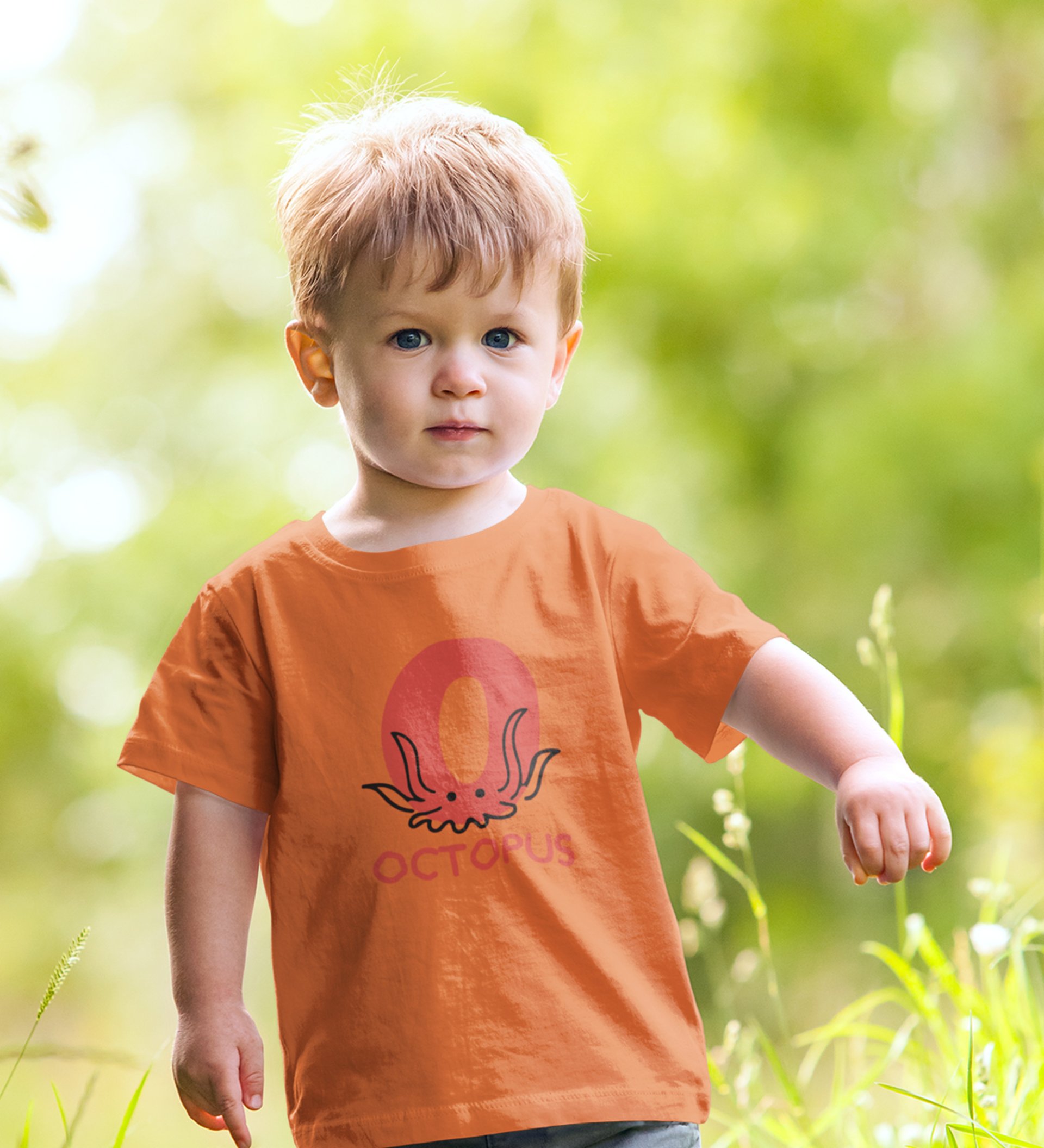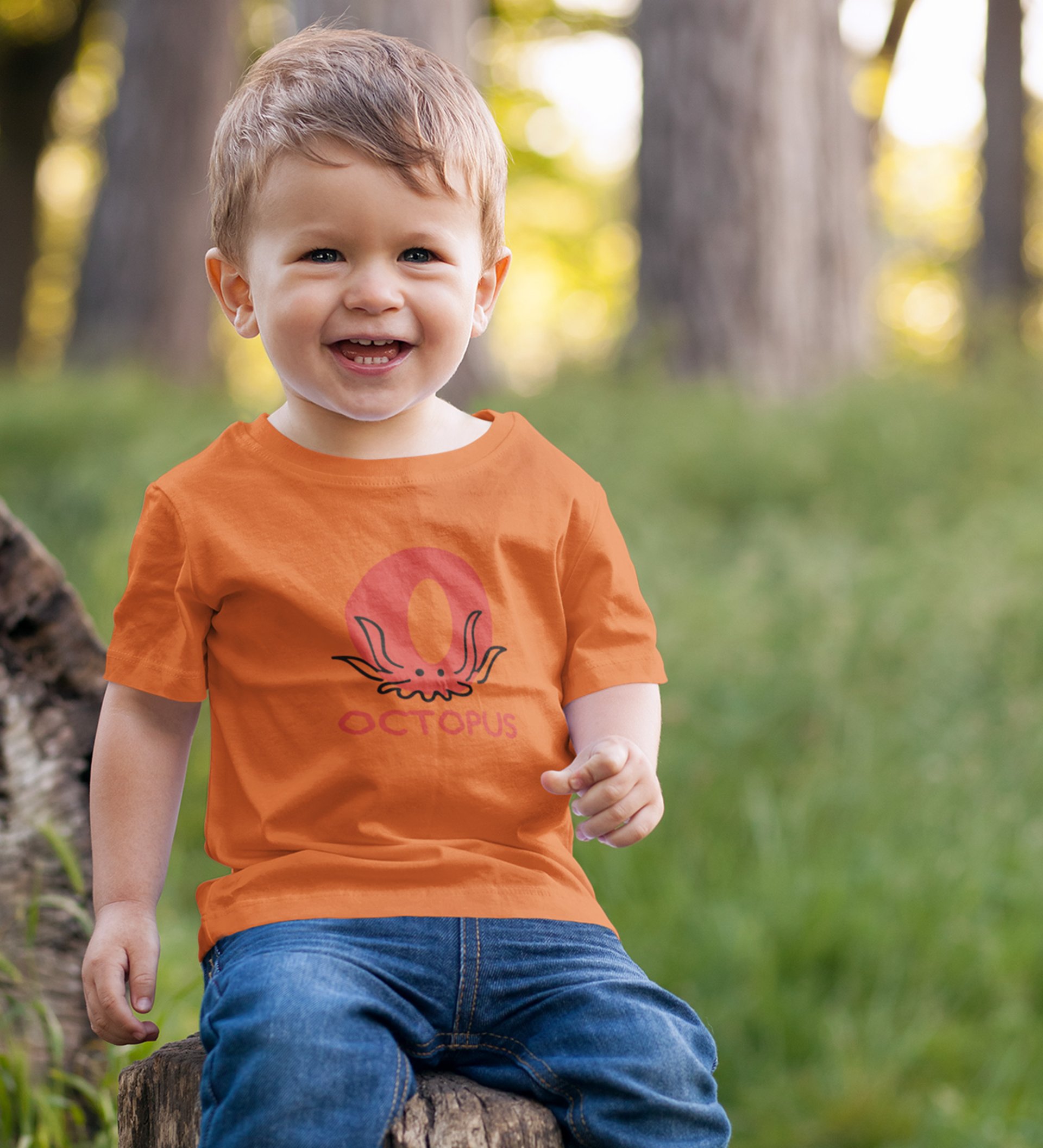 Ocean Octopus, Boys Printed Crew Neck Tshirt (orange)