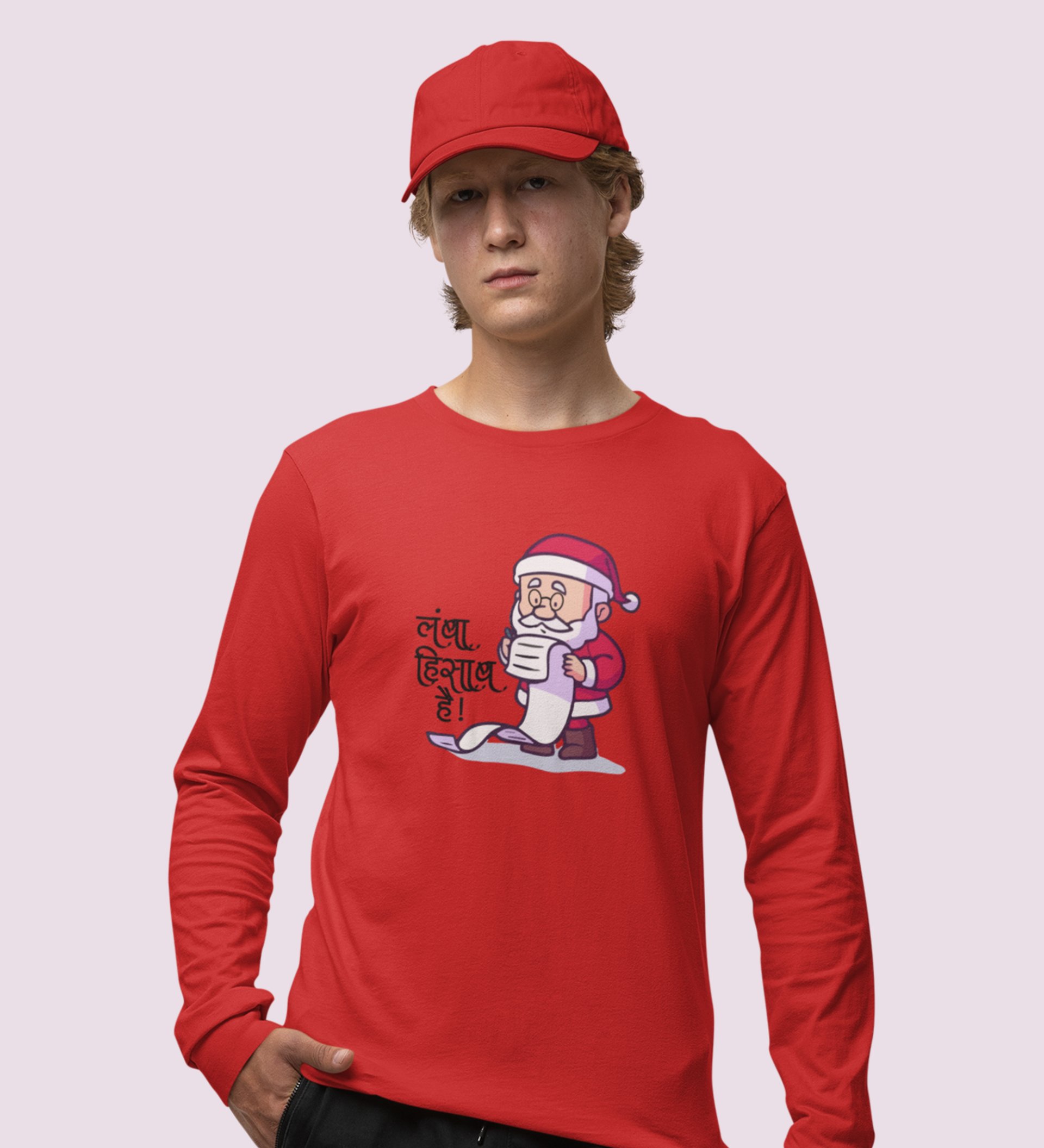 Old Grumpy Santa: Cute DesignedFull Sleeve T-shirt Red Perfect Gift For Boys Girls