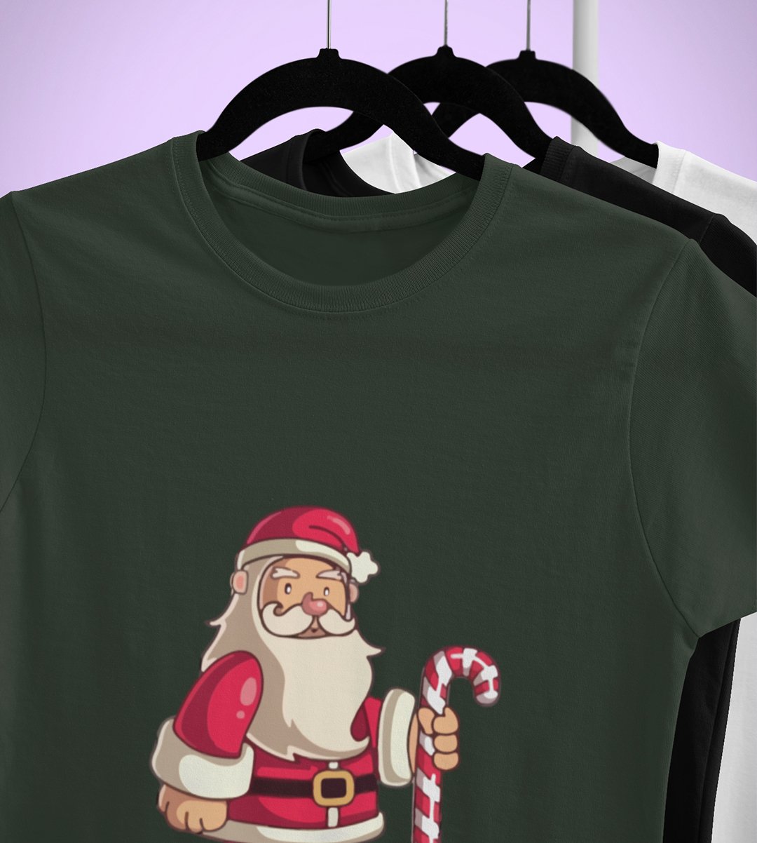 Old Grumpy Santa : Funny Printed T-shirt (Green) Best Gift For Secret Santa