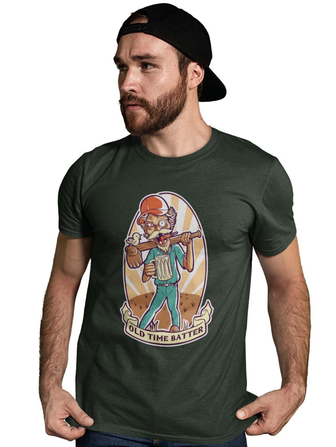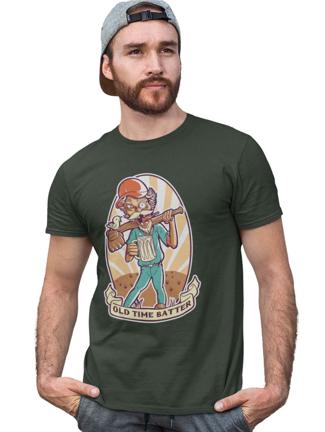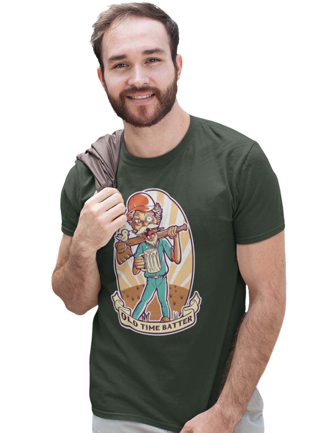 Grumpy Batter Green Round Neck Cotton Half Sleeved T-Shirt with Printed Graphics