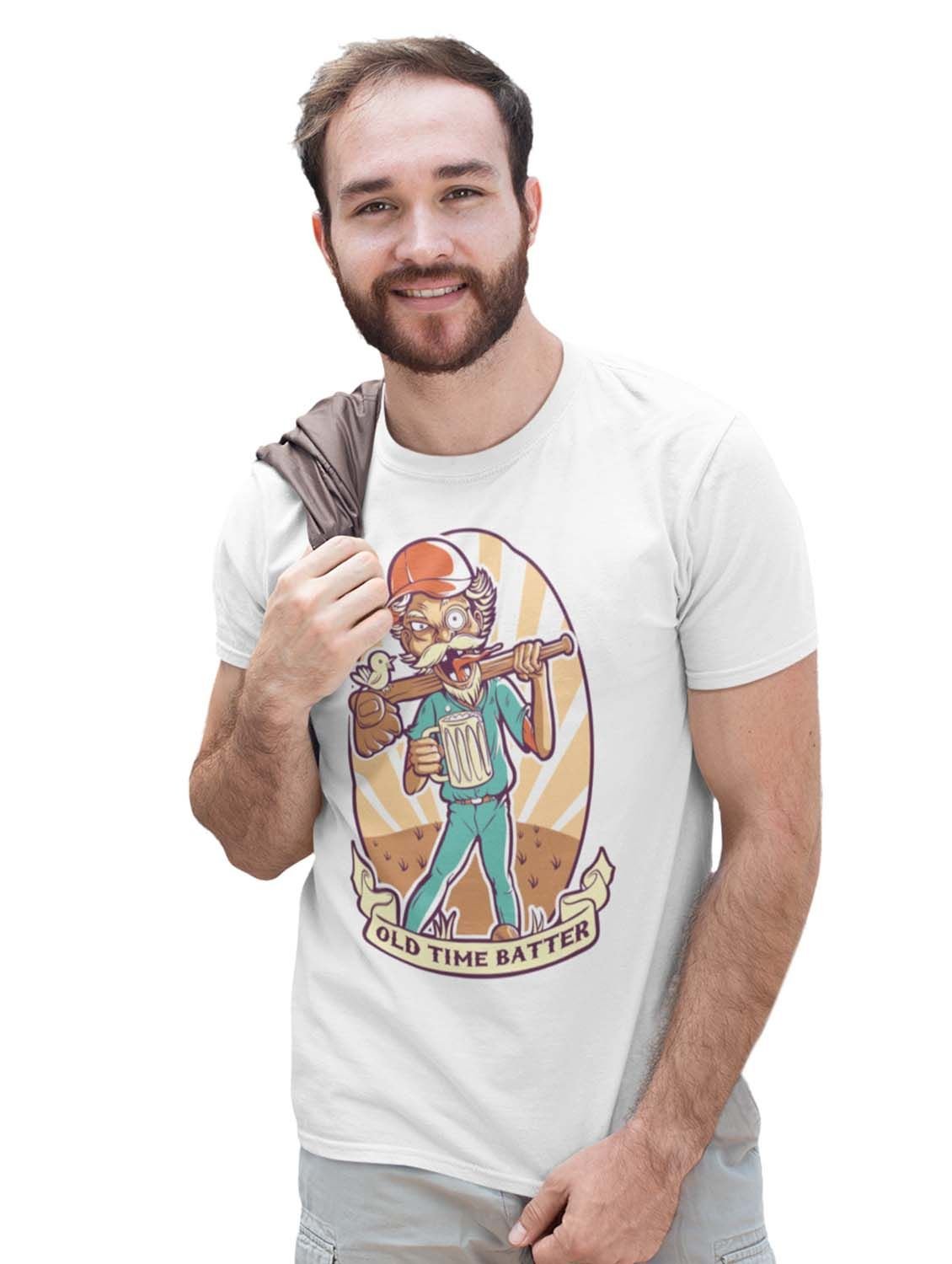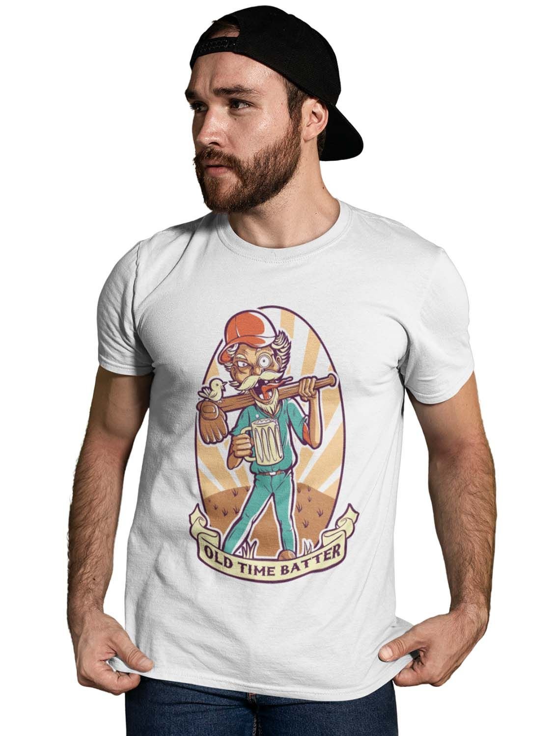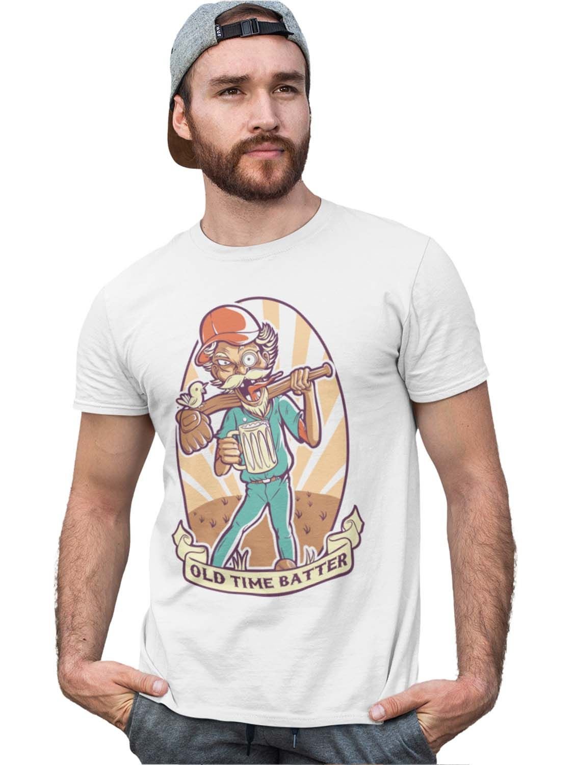 Grumpy Batter White Round Neck Cotton Half Sleeved T-Shirt with Printed Graphics