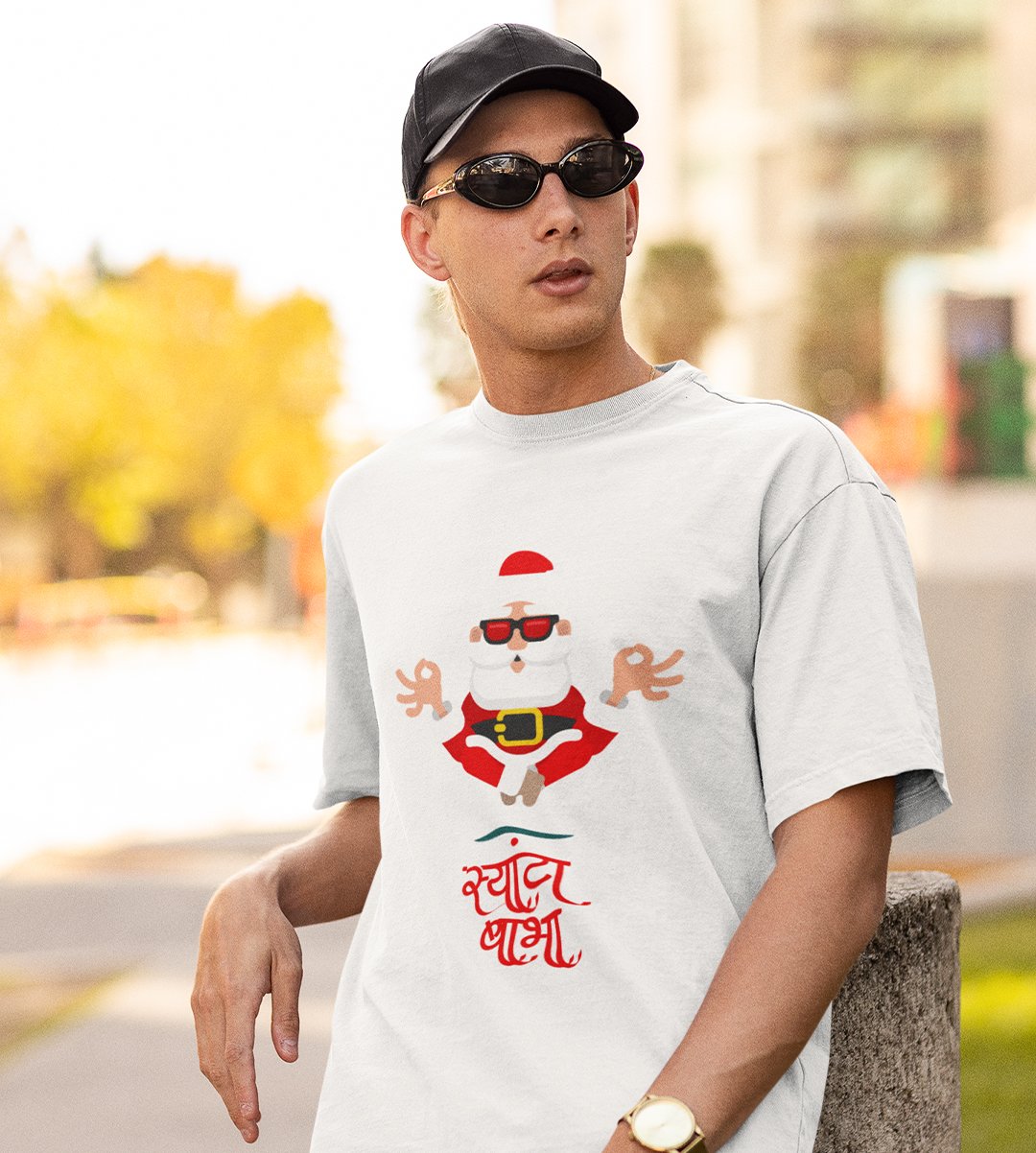 Om Santa Baba: Beautifully Printed T-shirt (White) Best Fift For Secret Santa