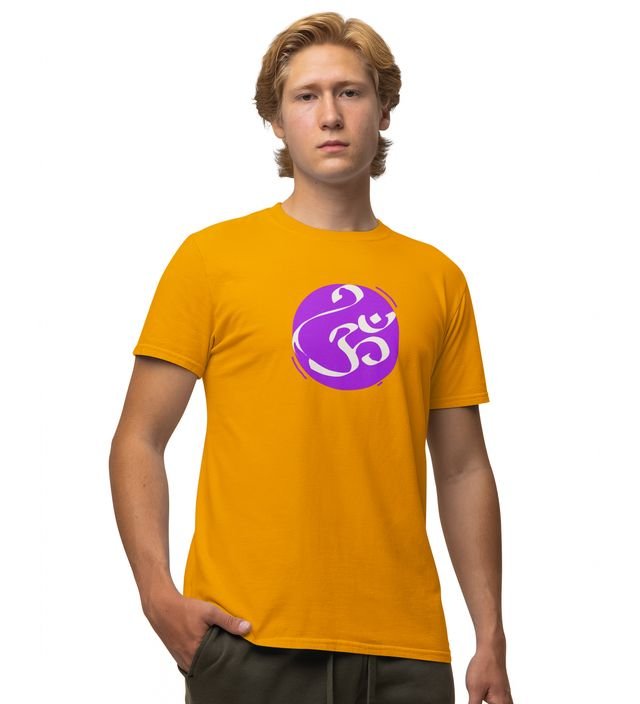Om! Yellow Round Neck Cotton Half Sleeved Men T-Shirt with Printed Graphics