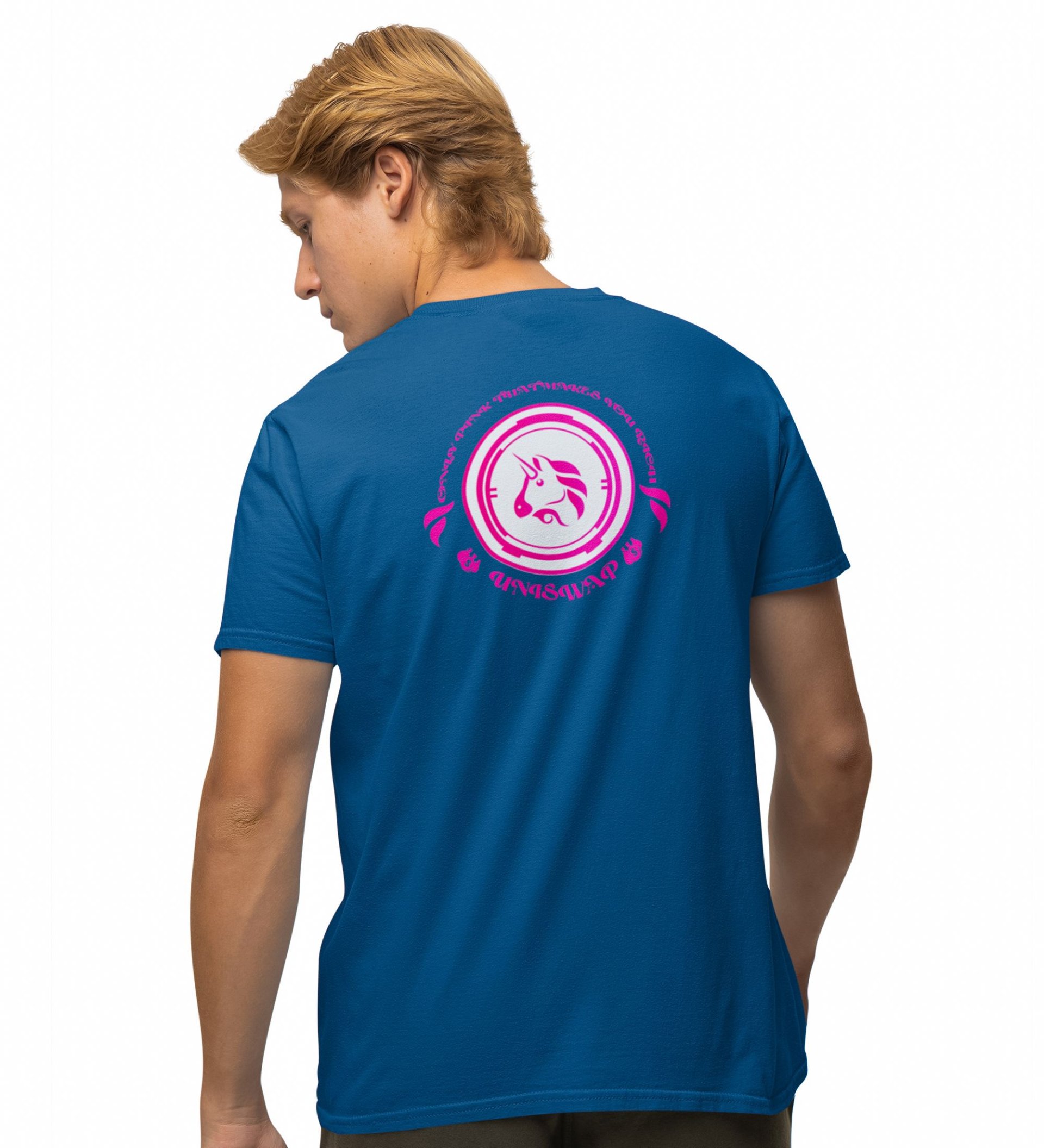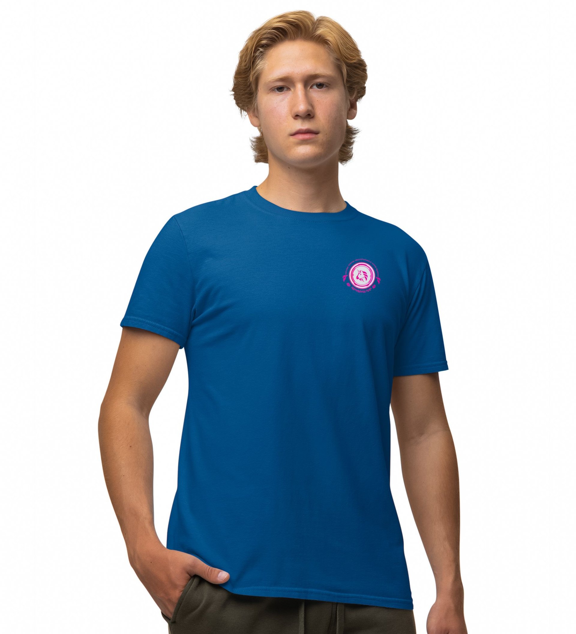 Only Pink Wings Blue Round Neck Cotton Half Sleeved Men's T Shirt with Printed Graphics