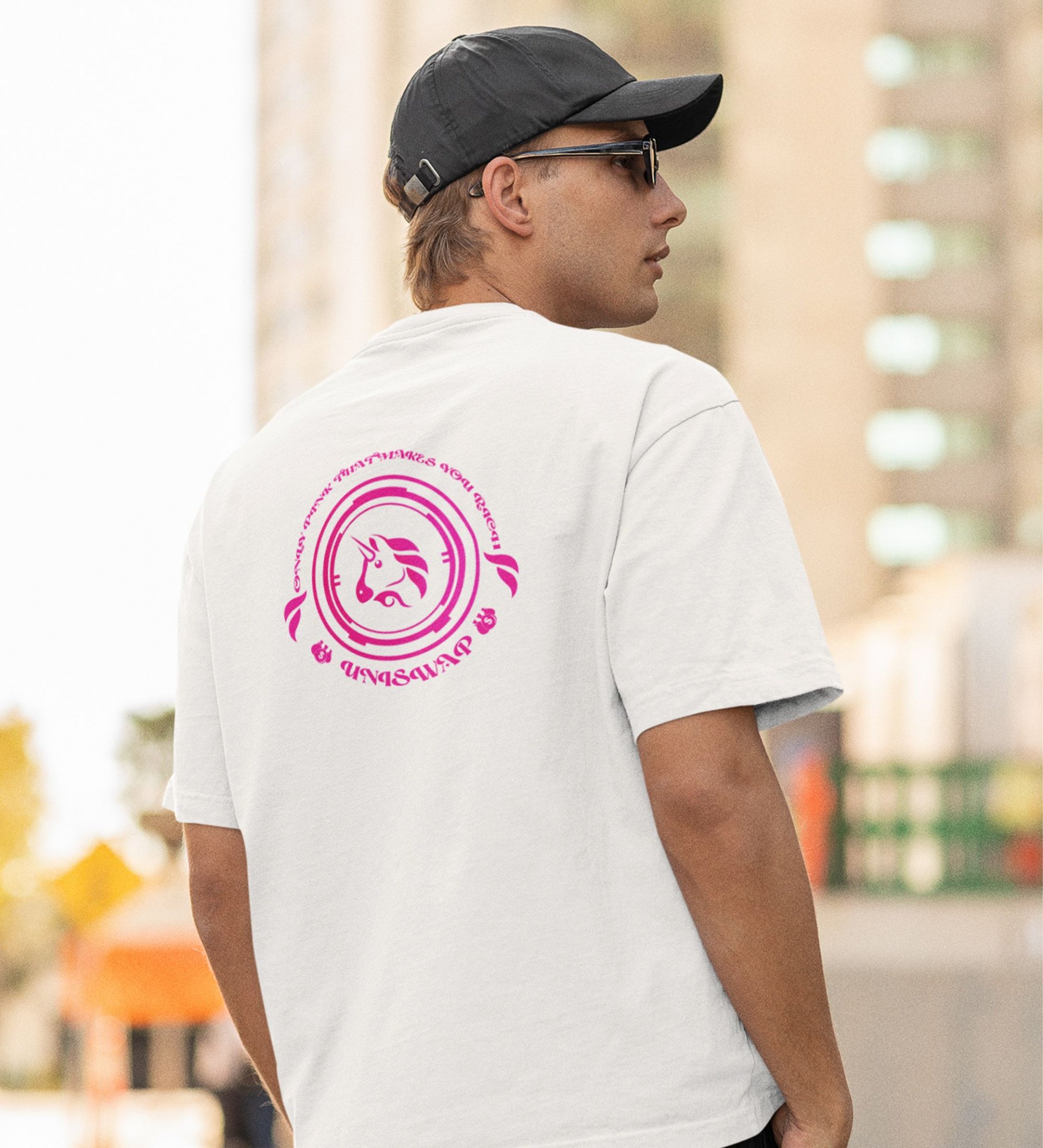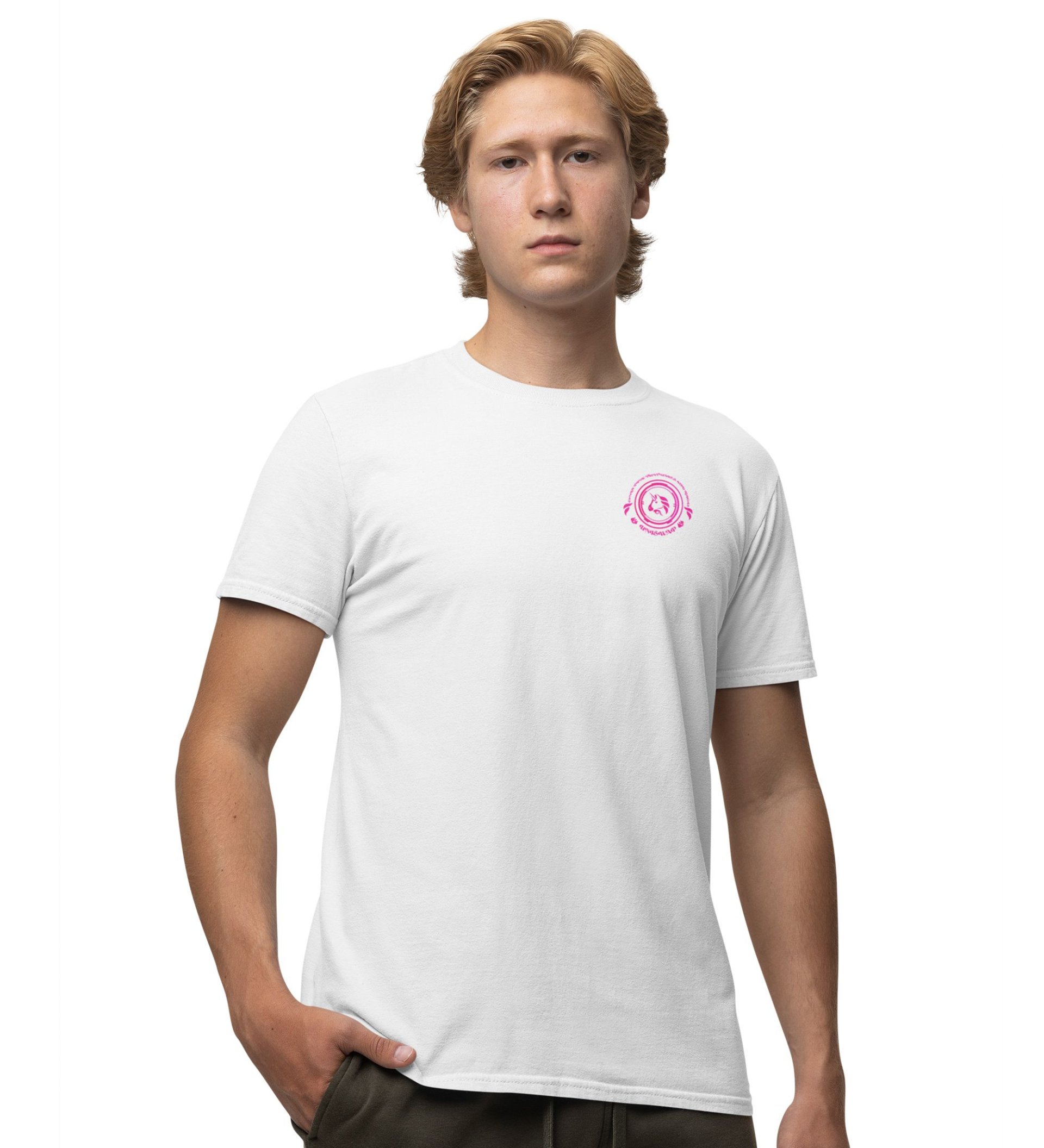 Only Pink Wings White Round Neck Cotton Half Sleeved Men's T Shirt with Printed Graphics