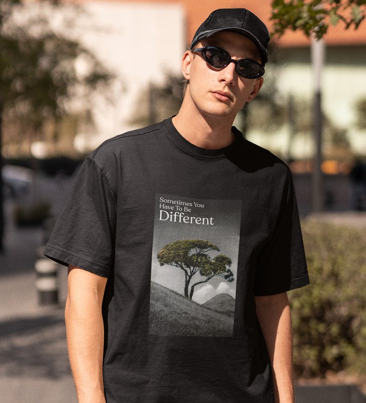 Out Of the Box, Signature Streetwear: Black Men's Oversized Tee with Front Graphic Appeal