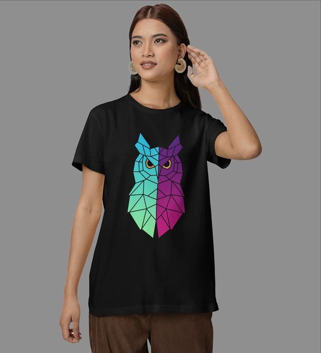 Owl of Two Worlds: Graphic Printed Black T-Shirt