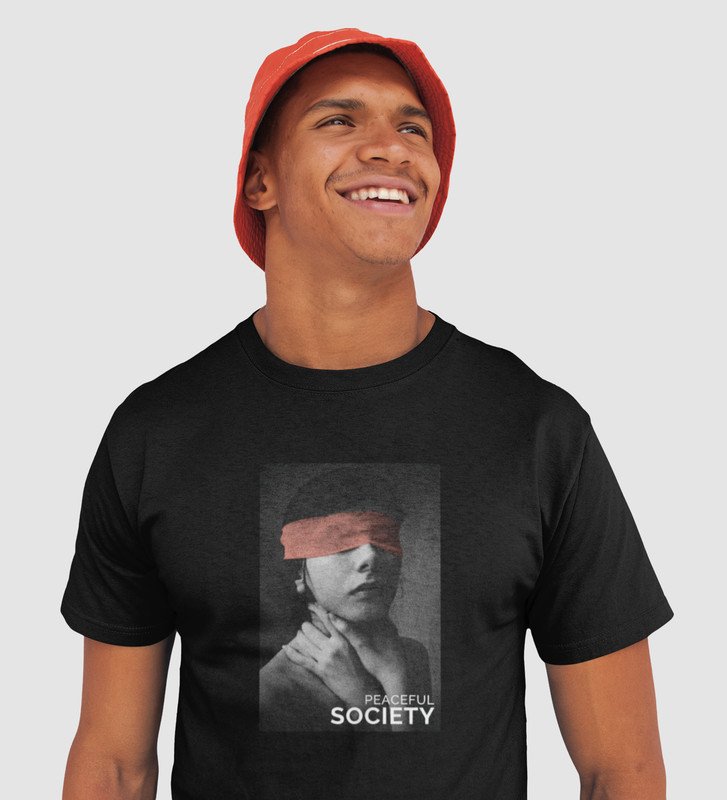 Pacifist Society, Urban Legend Series: Black Men's Oversized Round Neck T-Shirt with Front Print