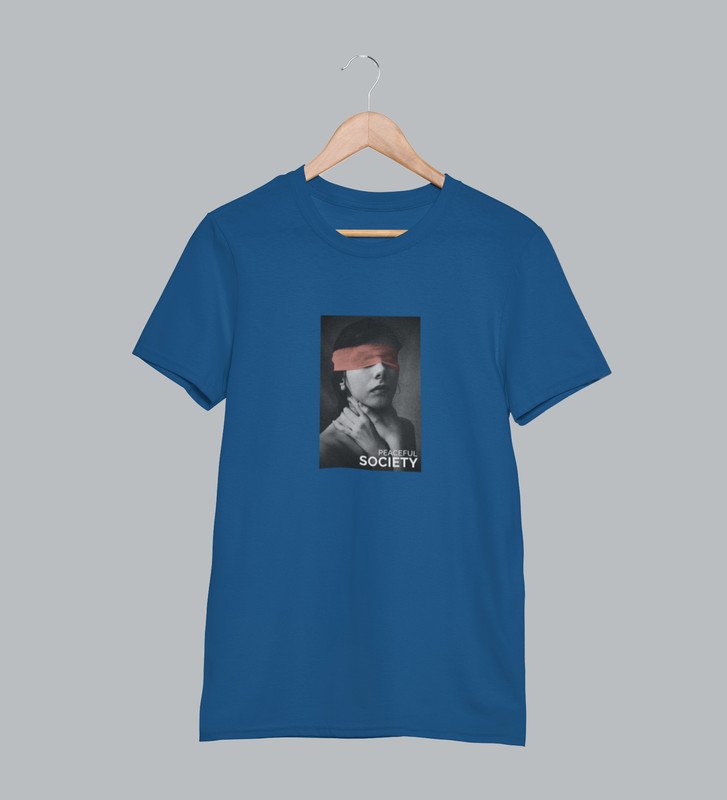 Pacifist Society, Urban Legend Series: Blue Men's Oversized Round Neck T-Shirt with Front Print